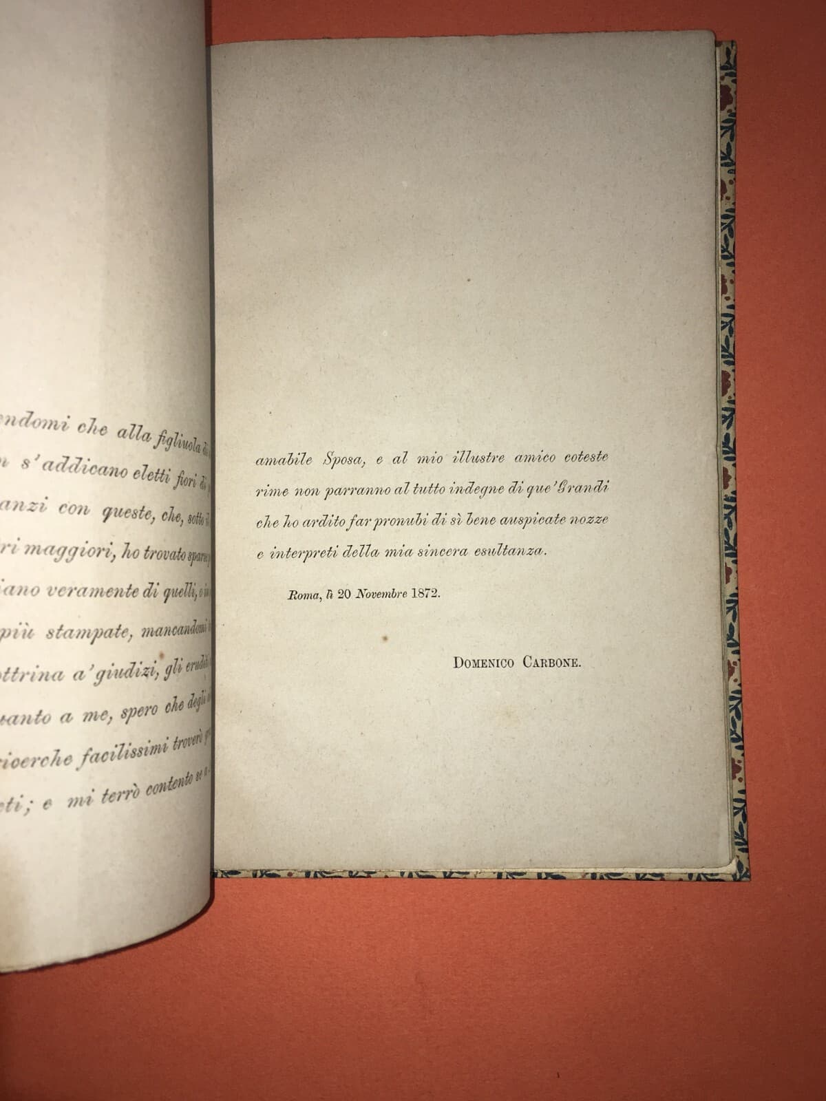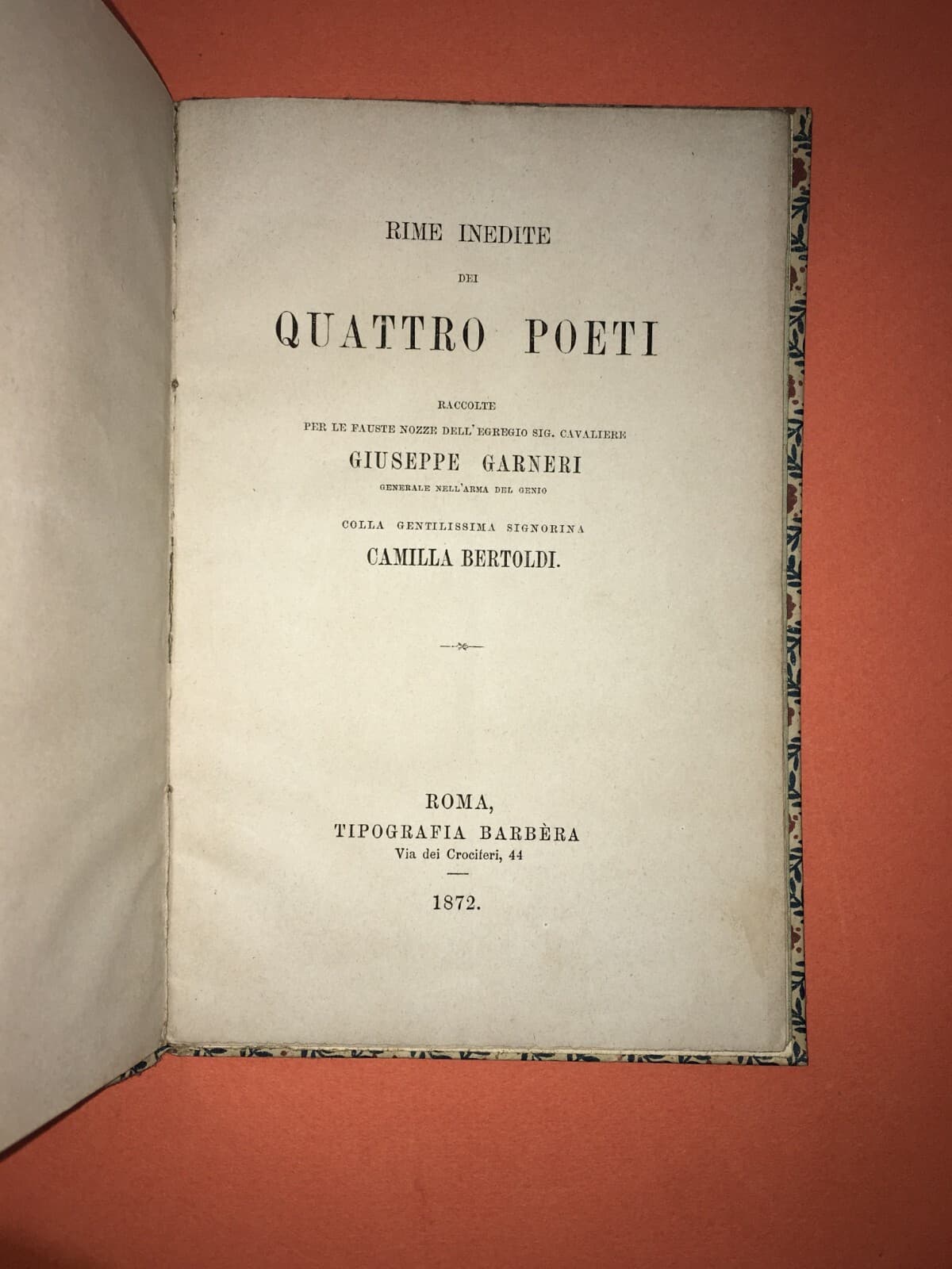 Antica Edizione Per Nozze Garneri Bertoldi, A Cura Di Domenico Carbone, 1872