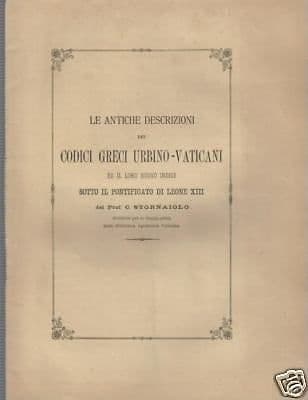 Stornaiolo: Le Antiche Descrizioni Dei Codici Greci Urbino Vaticani (fine '800)