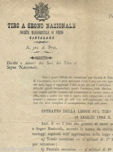 Regolamento Del Tiro A Segno Nazionale Di Fermo, 1890