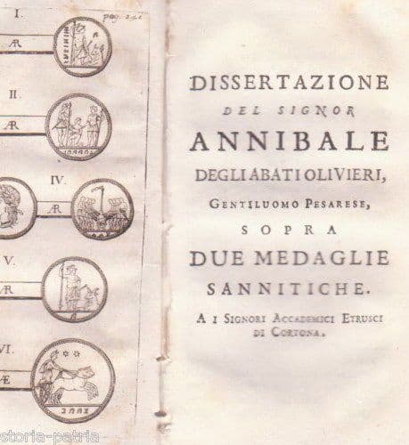 Dissertazione Sopra Due Medaglie Sannitiche Annibale Degli Abati Olivieri