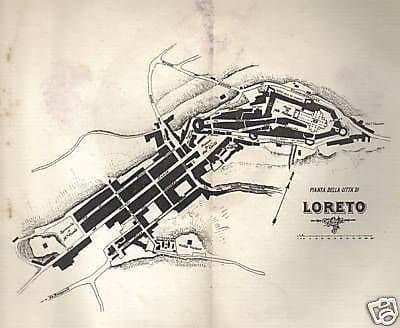 Mappa Topografica Antica Di Loreto, Fine '800, Stampa Litografica