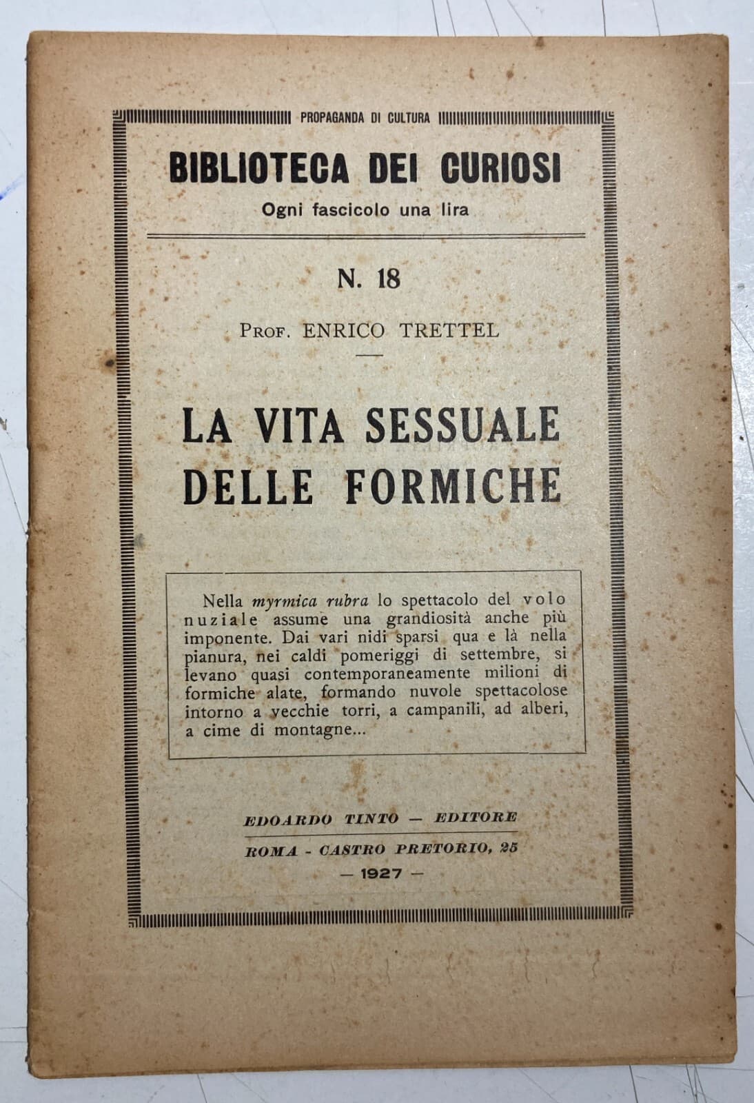 Zoologia: Sessualità Nelle Formiche Trettel Antica Edizione 1927