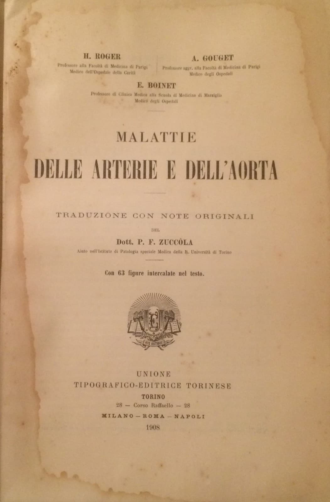 Medicina: Angiologia, Arterie, Arterite, Aneurismi, Sifilide. Roger, Gouget, Boinet (1908)