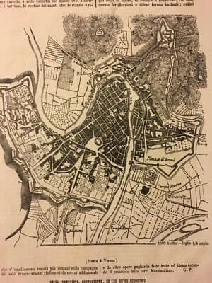 Veneto, Verona: Antica Mappa Topografica, Stradario, Bastioni, Adige, Piazza d'Armi