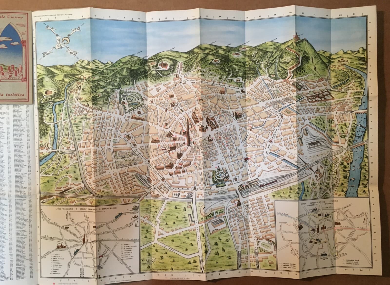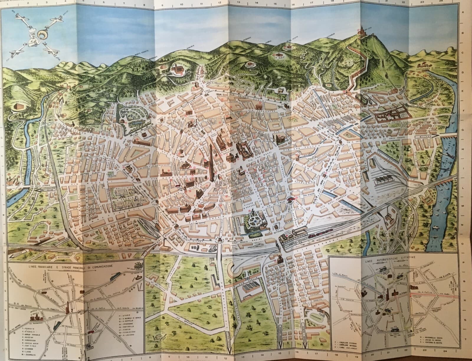 Bologna Antica Cartografia Mappa Topografica Viabilità Alberghi Teatri Chiese