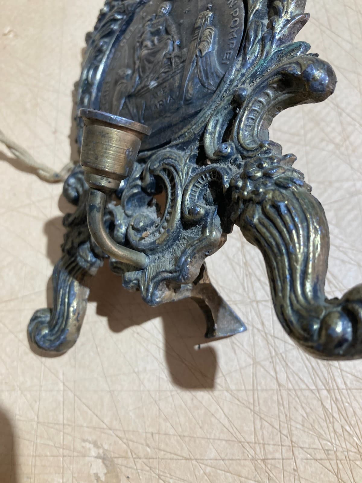 Antica Lampada Candelabro In Ottone Con Angelo, XIX Secolo