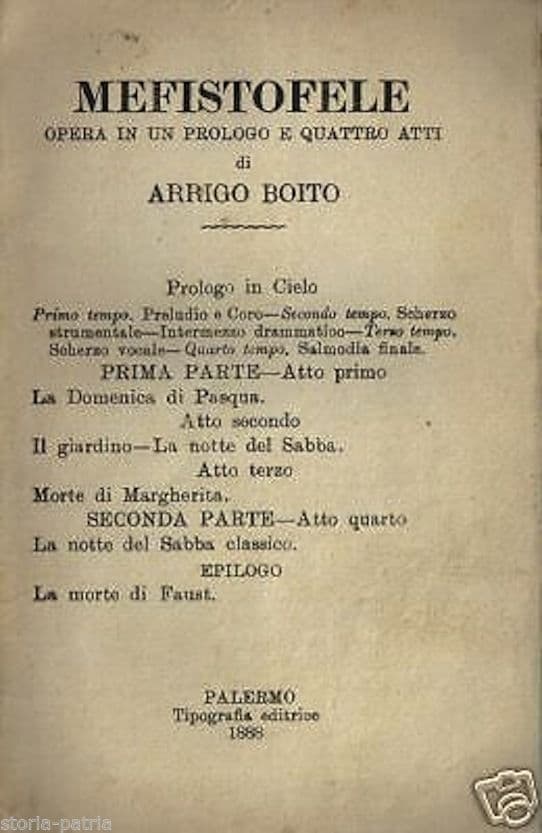 Mefistofele Di Arrigo Boito: Edizione Palermo 1888 Libretto d'Opera