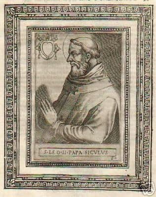 Ritratto Antico Di Papa Leone II, Incisione Originale Del XVI Secolo, Sicilia
