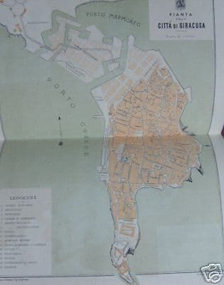 Siracusa, Sicilia: Mappa Topografica Antica Vallardi, Anni '10 TCI