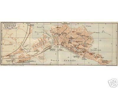 Mappa Topografica Antica Di Siracusa, Sicilia, Primo '900
