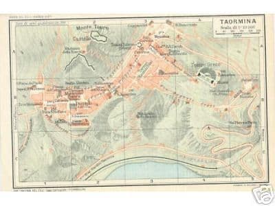 Mappa Topografica Antica Di Taormina, Sicilia, Vallardi TCI, 1900 Circa