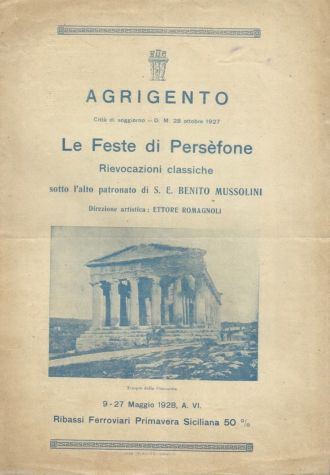 Feste Di Persefone Agrigento 1928 Pieghevole Teatro Ettore Romagnoli