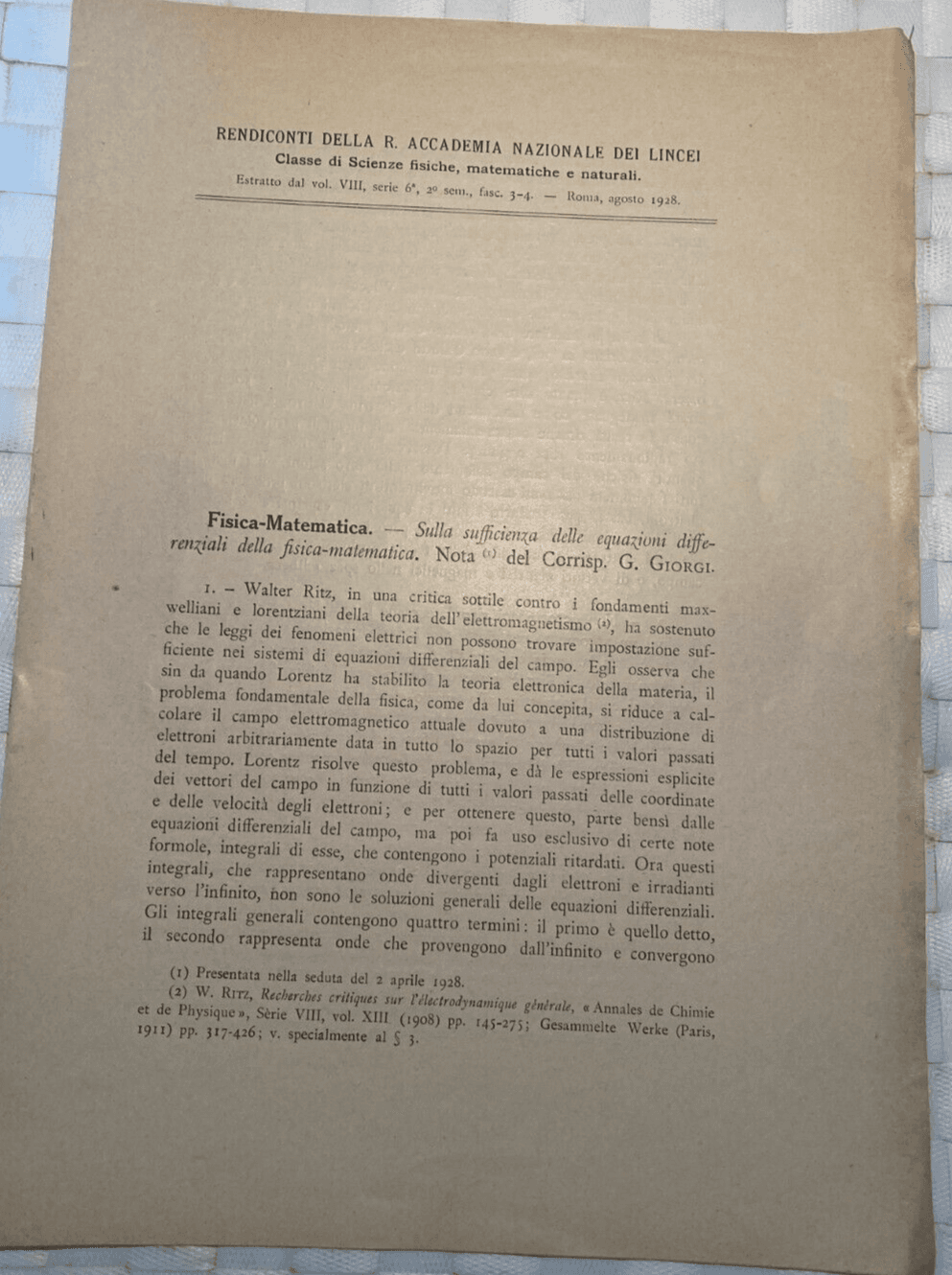 Fisica, Matematica, Onde, Teoria Dei Campi Giovanni Giorgi Accademia Nazionale Dei Lincei Roma, 1928
