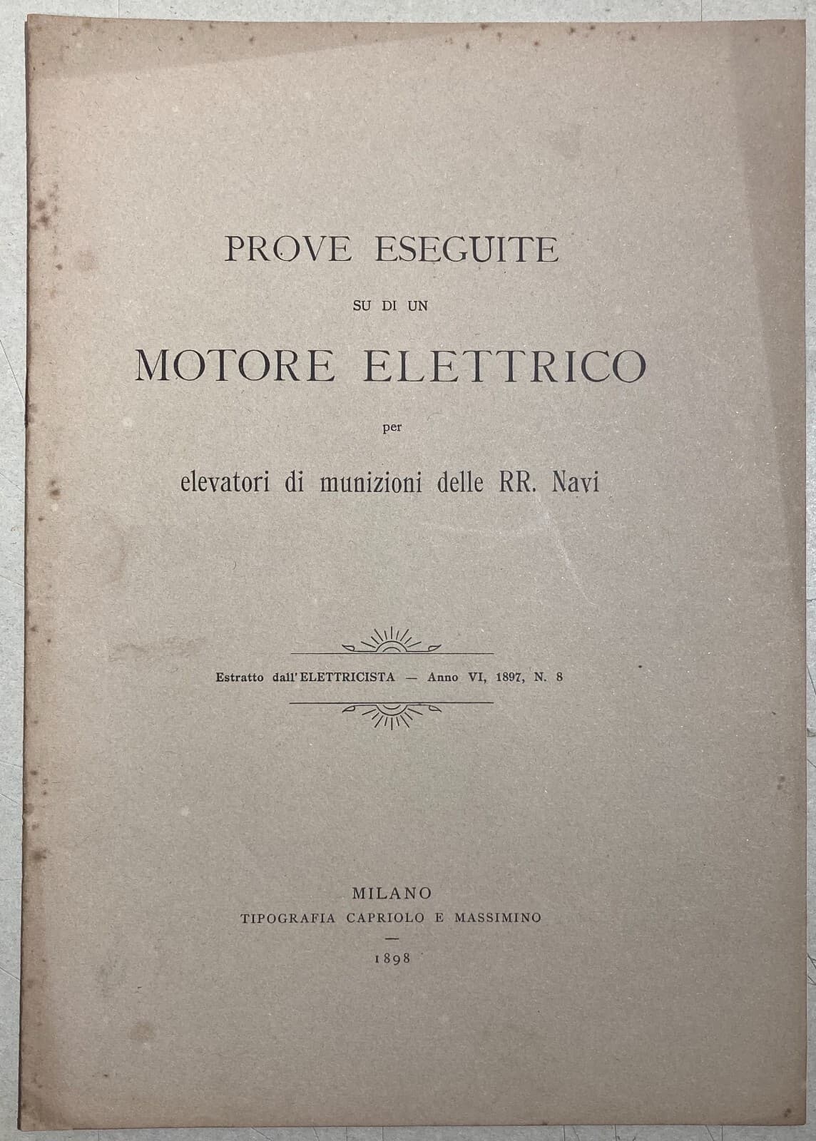 Militaria, Marineria, Elevatori Di Munizioni, Elettrotecnica, 1898