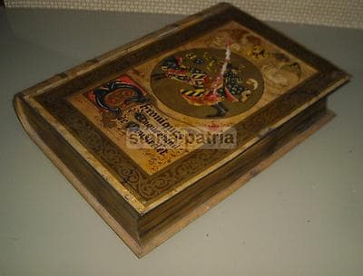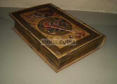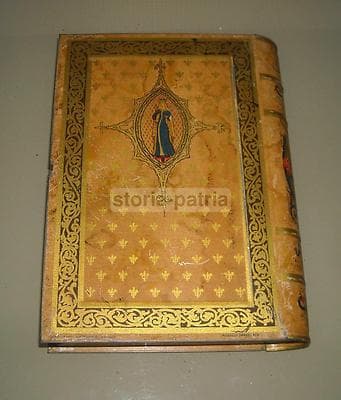 Scatola Pubblicitaria Elah A Forma Di Libro Con Araldica E Motivi Medievali, Anni '30