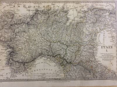 Alta Italia: Piemonte, Lombardia, Emilia, Aosta, Liguria. Mappa Geografica d'Epoca