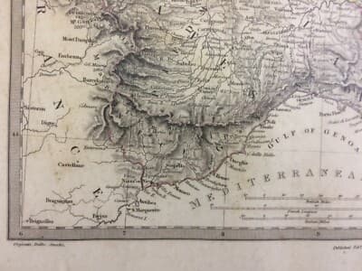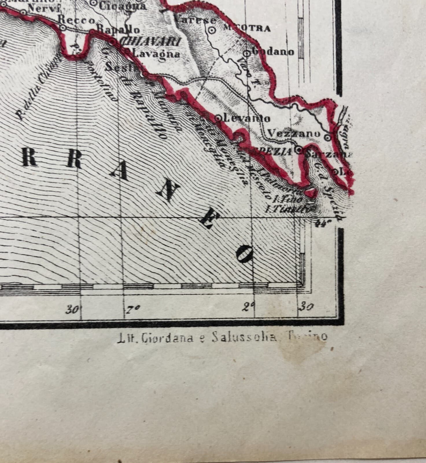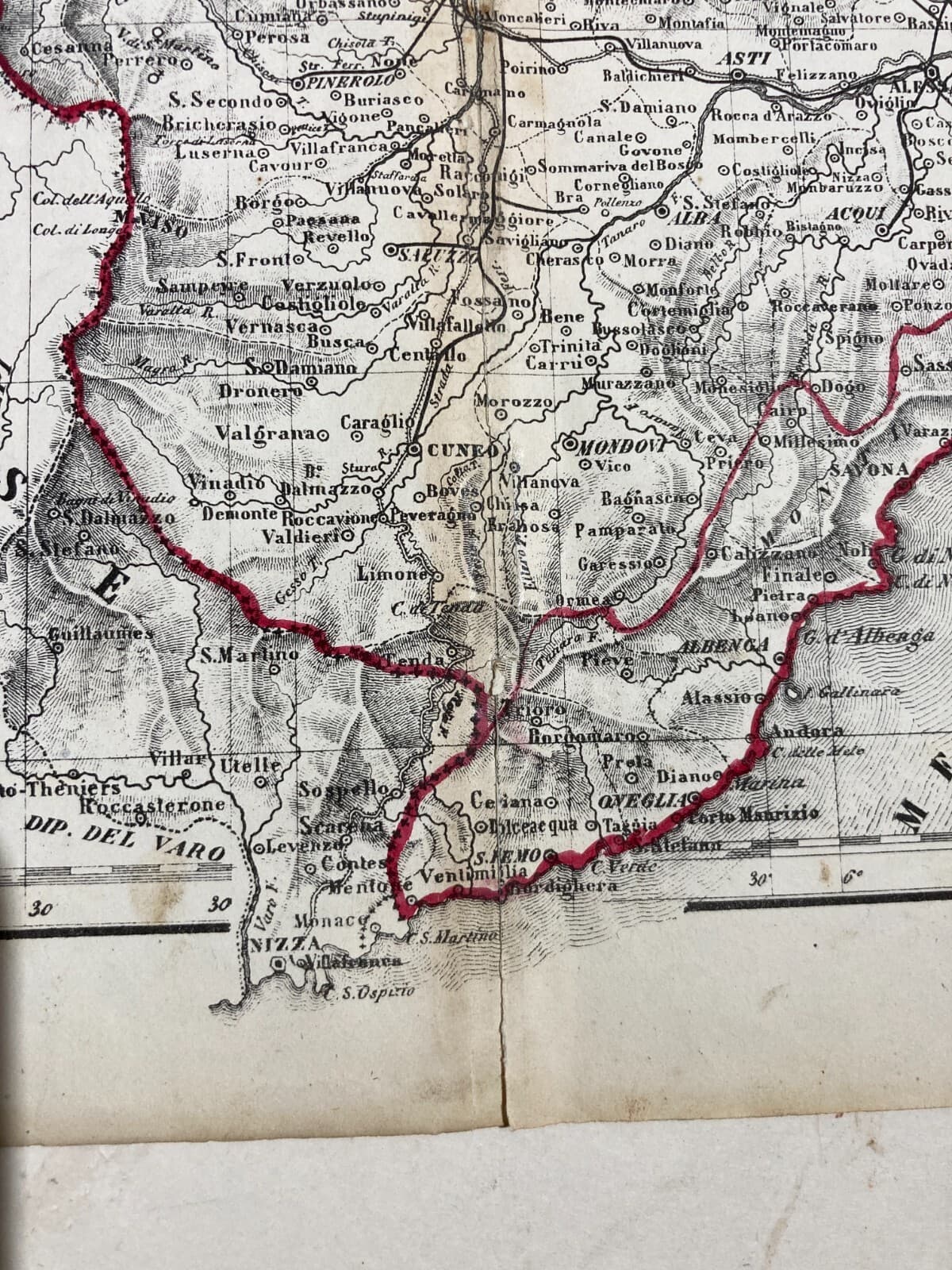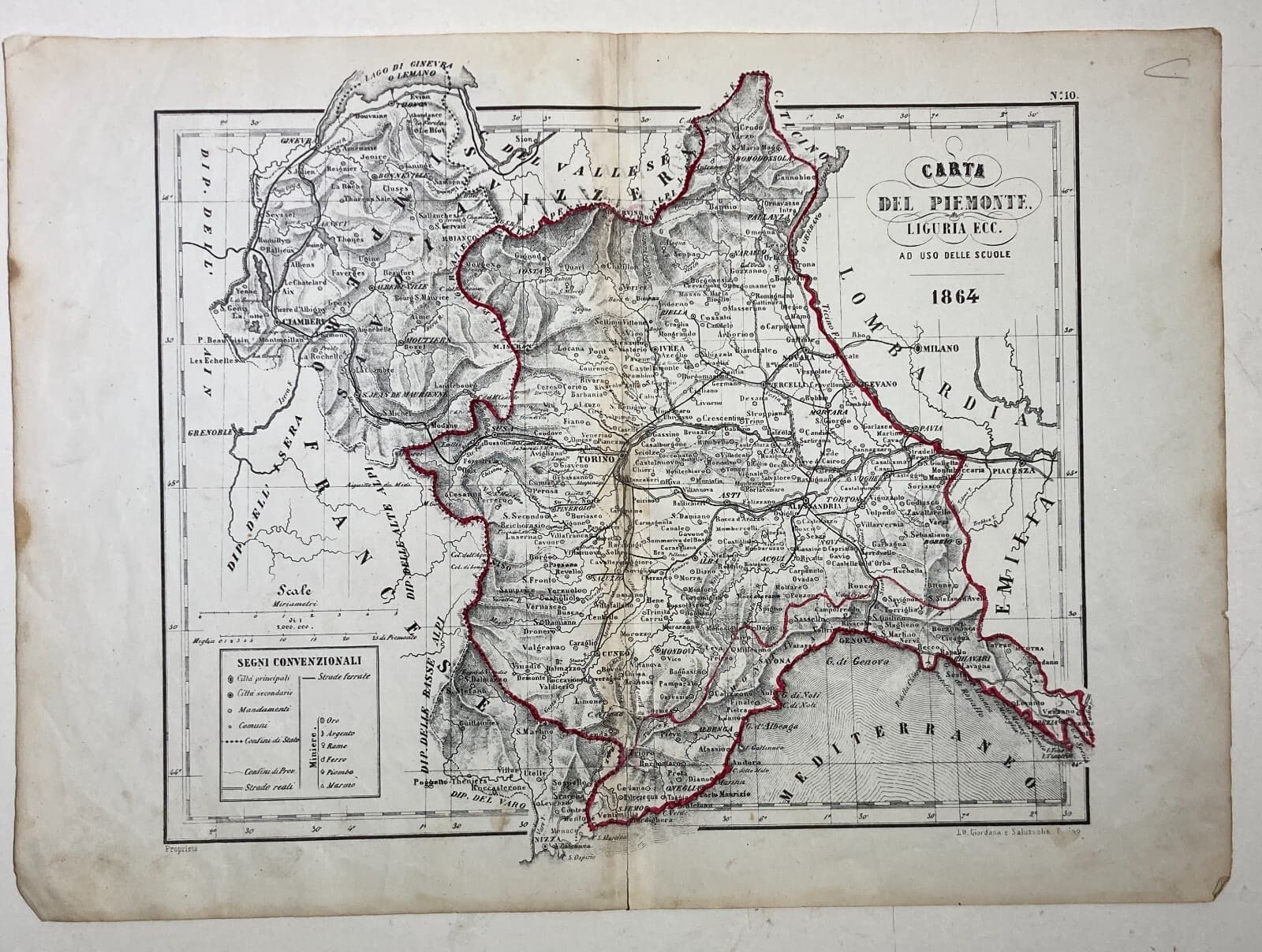 Antica Cartografia Piemonte, Liguria, Nizza, Ginevra, Milano, Piacenza, Torino 1864