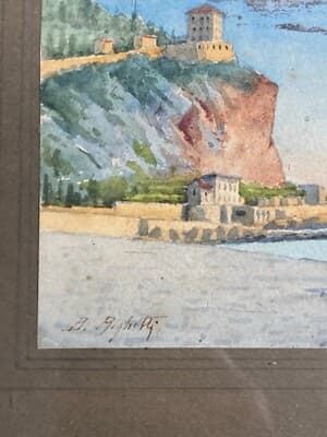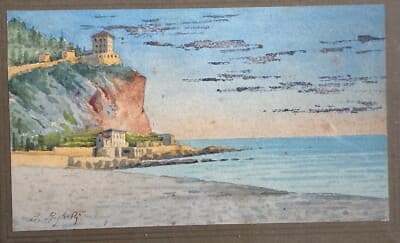 Paesaggio Con Marina E Case, Acquarello Firmato Righetti