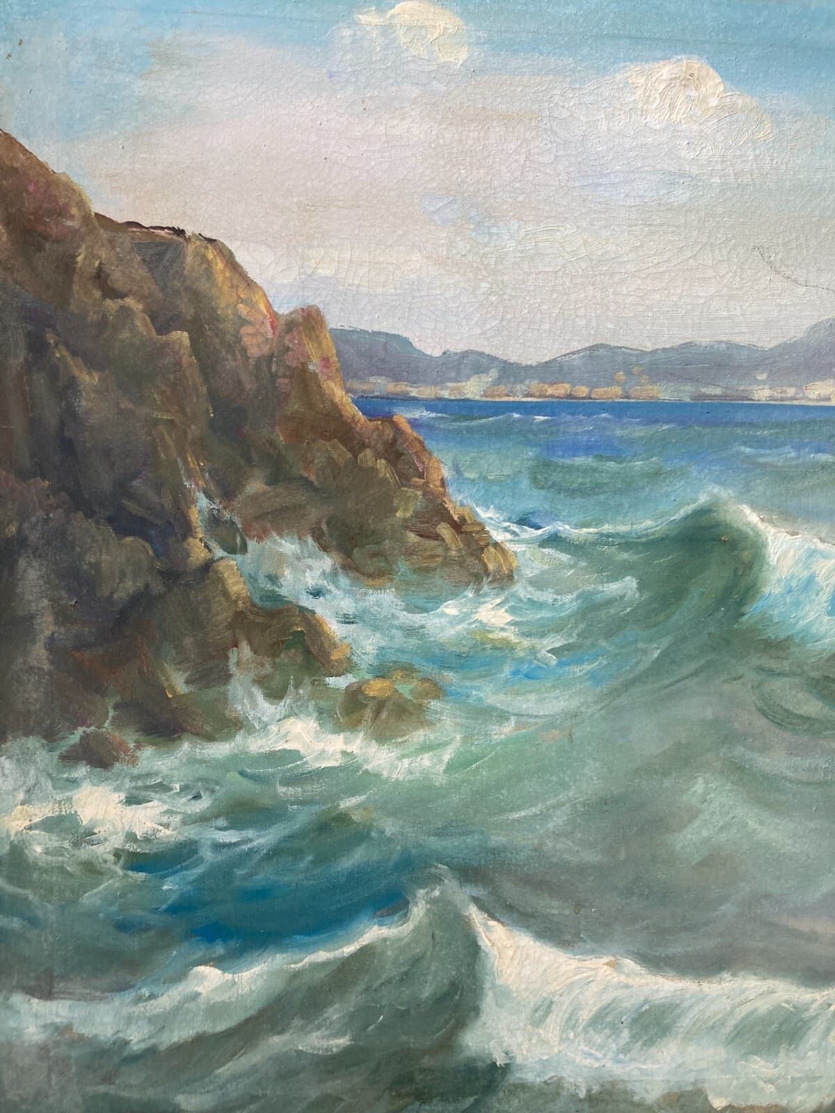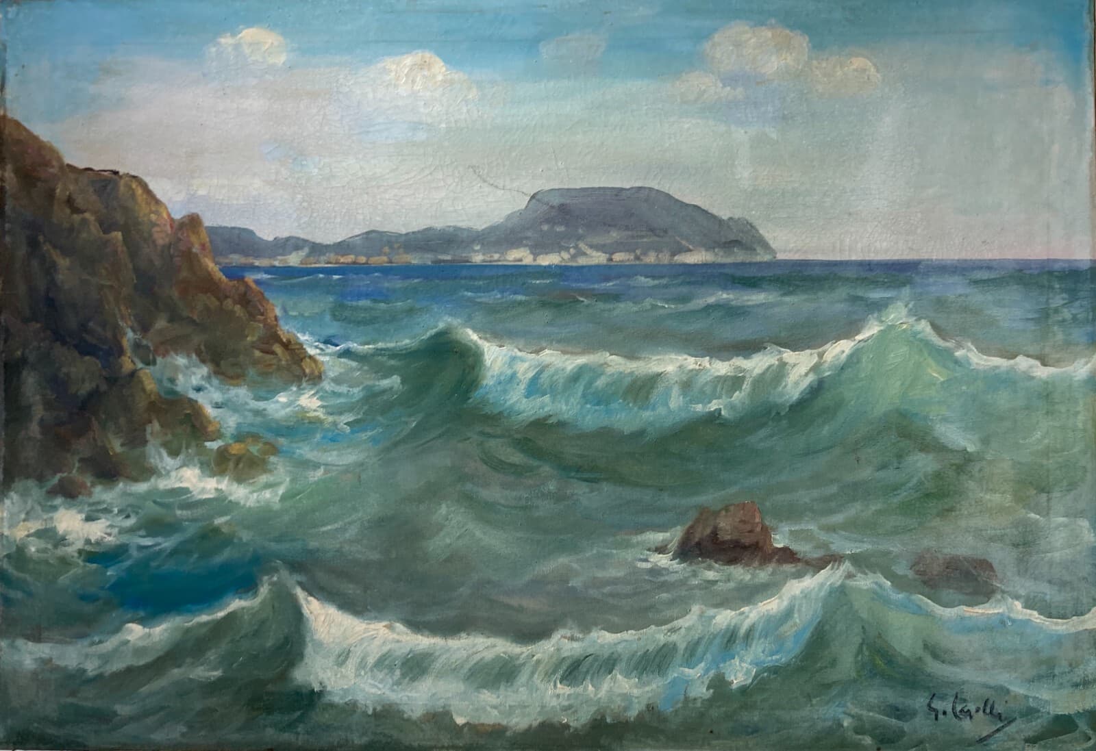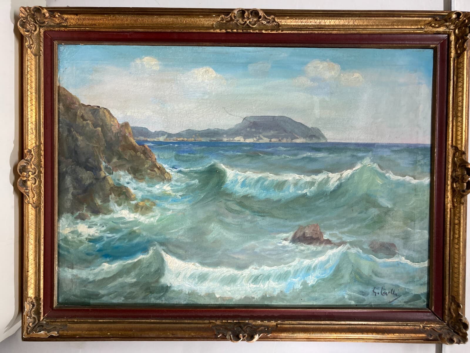 Arte Decorativa Del '900: Grande Dipinto Originale, Marina Panoramica Di Giuseppe Caselli