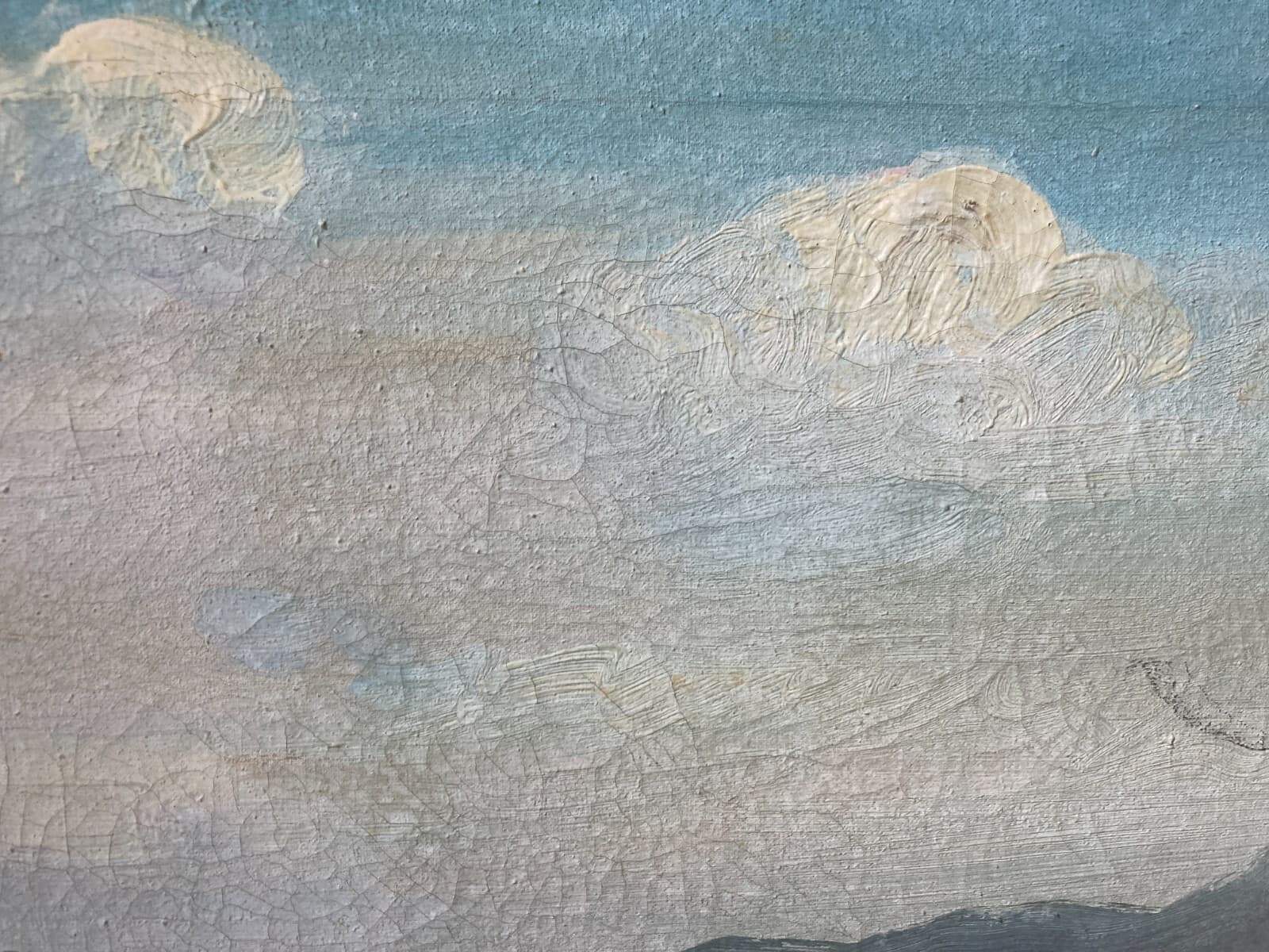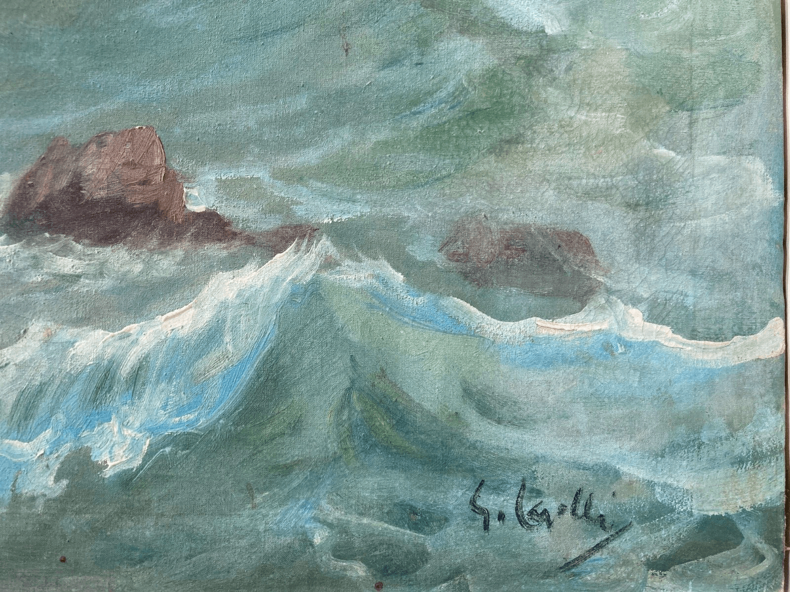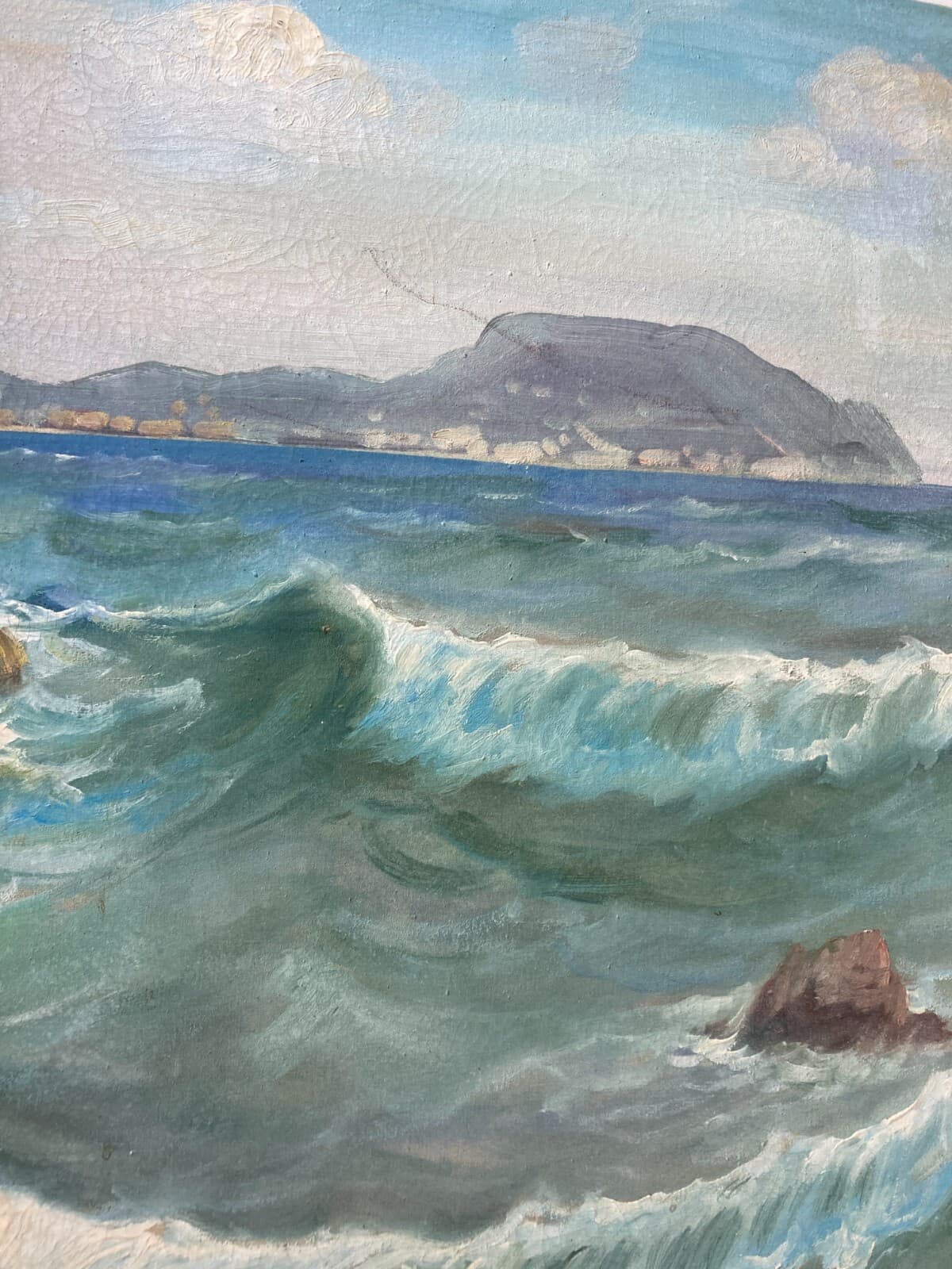 Arte Decorativa Del '900: Grande Dipinto Originale, Marina Panoramica Di Giuseppe Caselli
