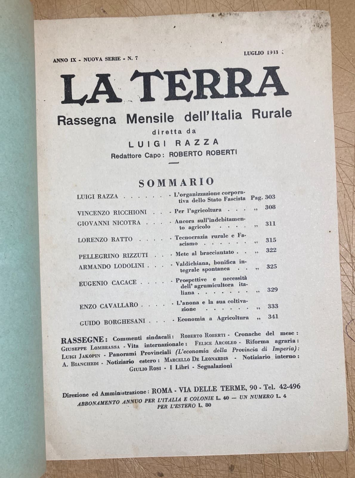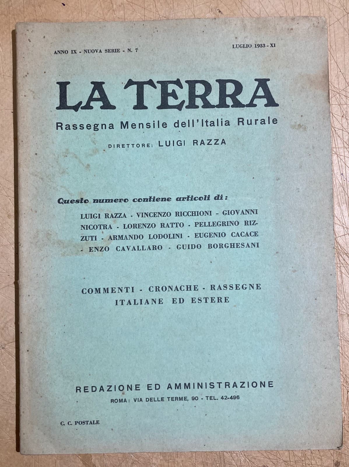 Agricoltura, Economia Agraria, Bonifiche, Valdichiana. Rivista La Terra, 1933