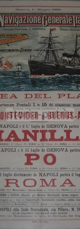 Genova, Napoli, Ngi Navigazione, Emigrazione In America, Plata, Manila, 1890