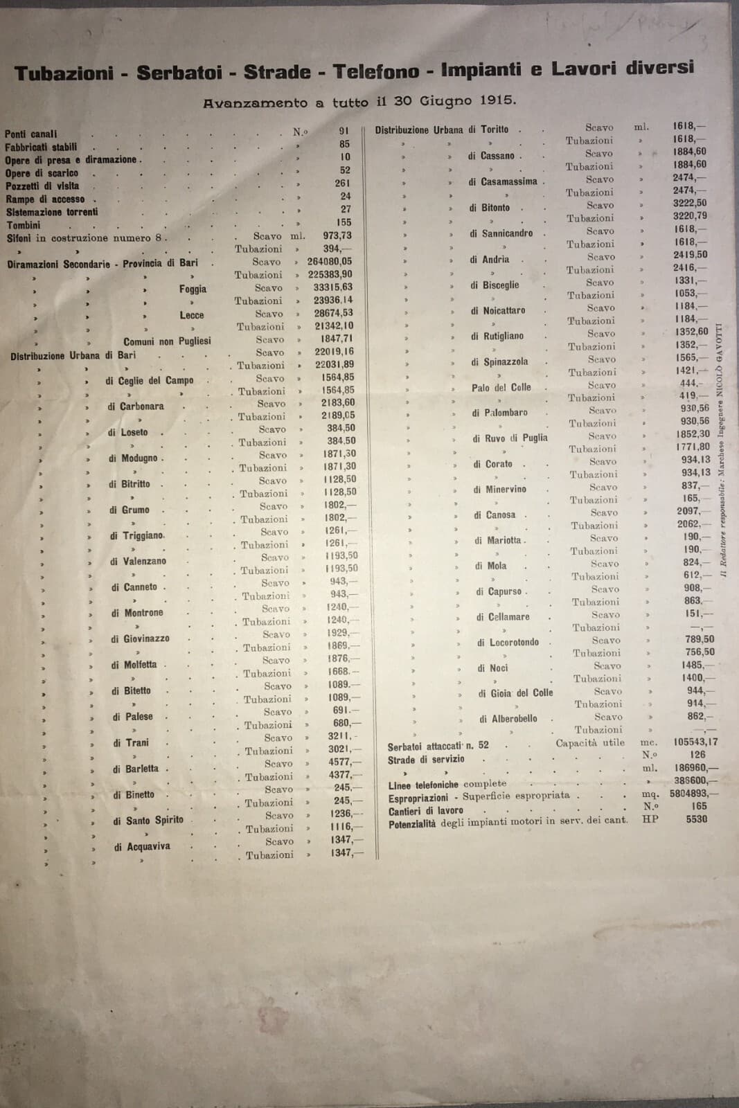 Puglia: Acquedotto Pugliese, Ingegneria Idraulica, Condotte E Diramazioni, 1915