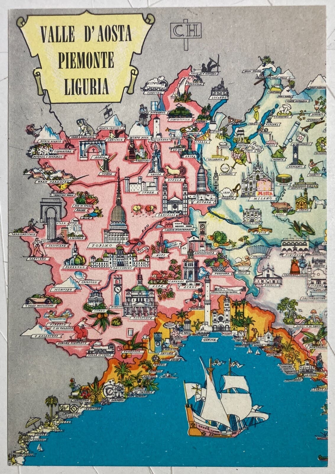 Pubblicitaria Motta Cartolina Cartografica Piemonte, Valle d'Aosta E Liguria