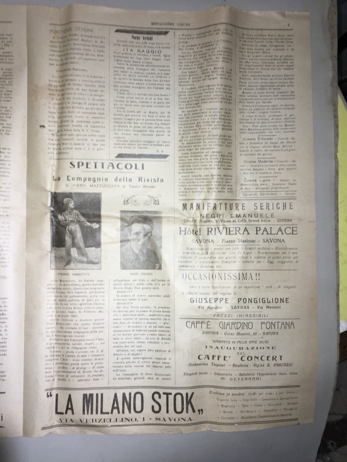 Messaggero Ligure Savona, Stefano Orioli, Fascismo, Teatro E Cinema Giornale 1924