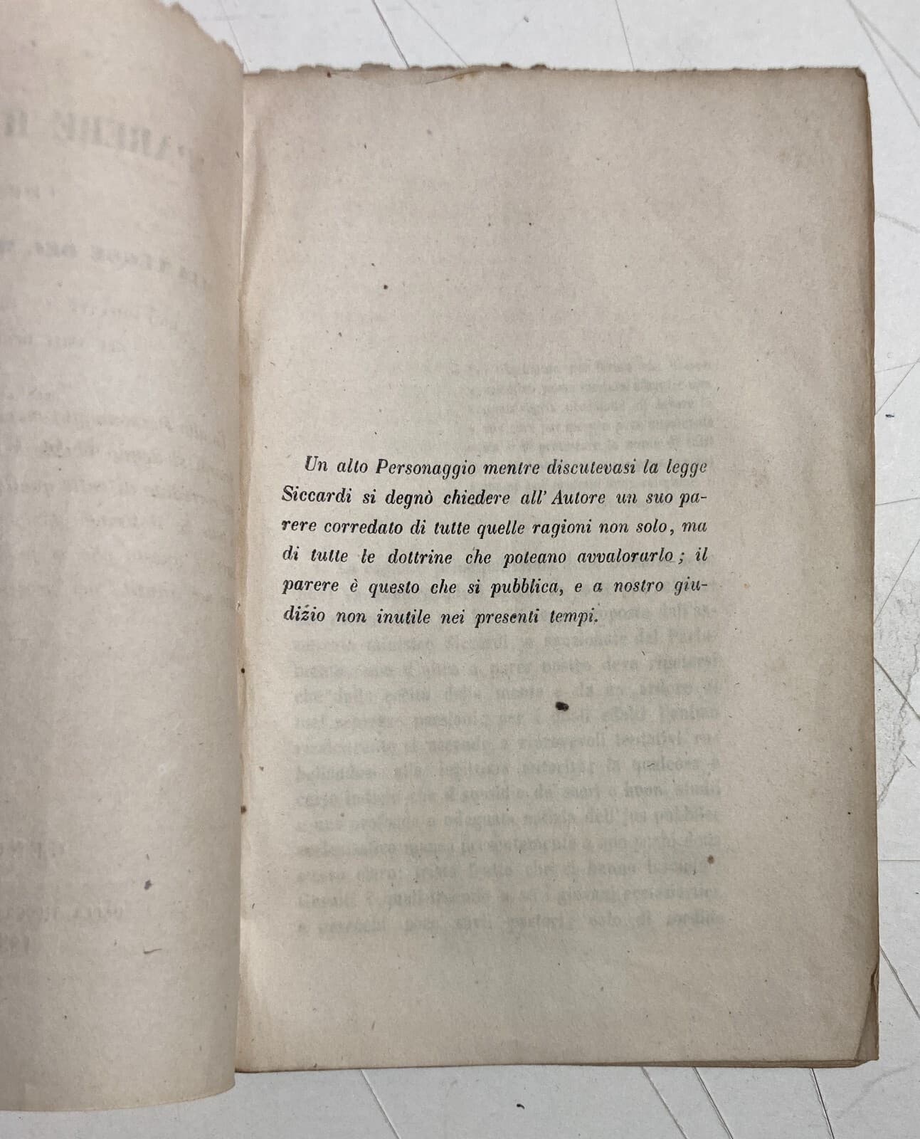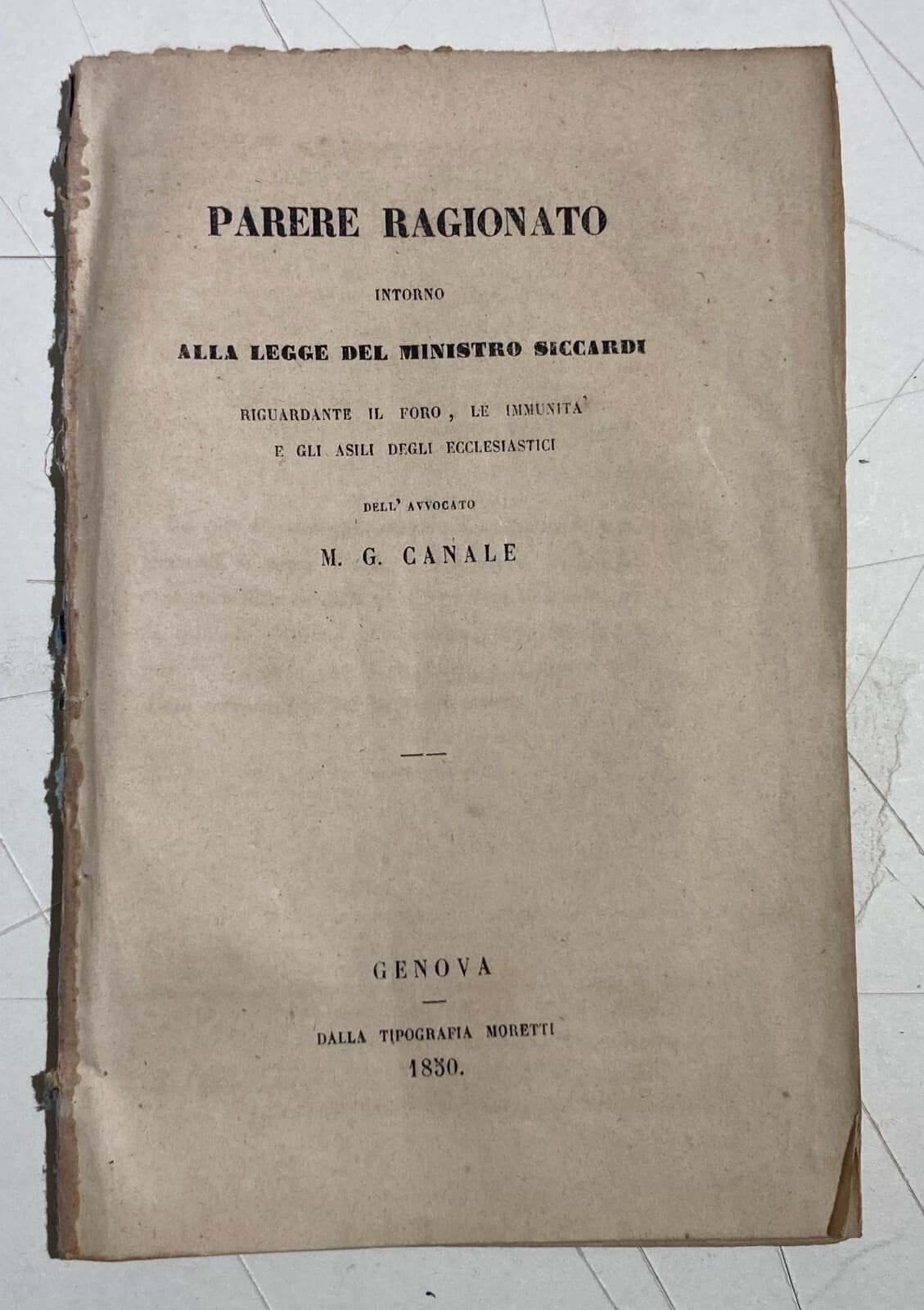 Liguria, Genova: Giuridica, Legge Siccardi. Antica Edizione, 1850. Avvocato Canale