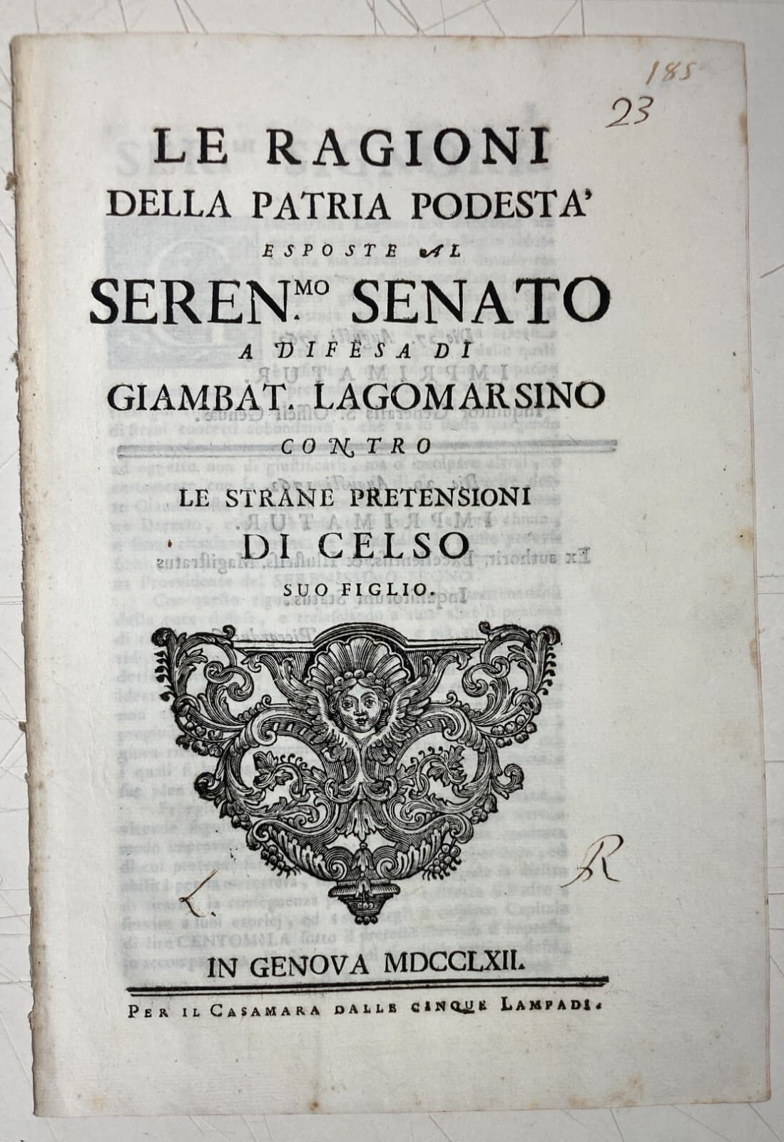 Le Ragioni Della Patria Potestà: Giambattista Lagomarsino Contro Celso Lagomarsino (Genova, 1762)