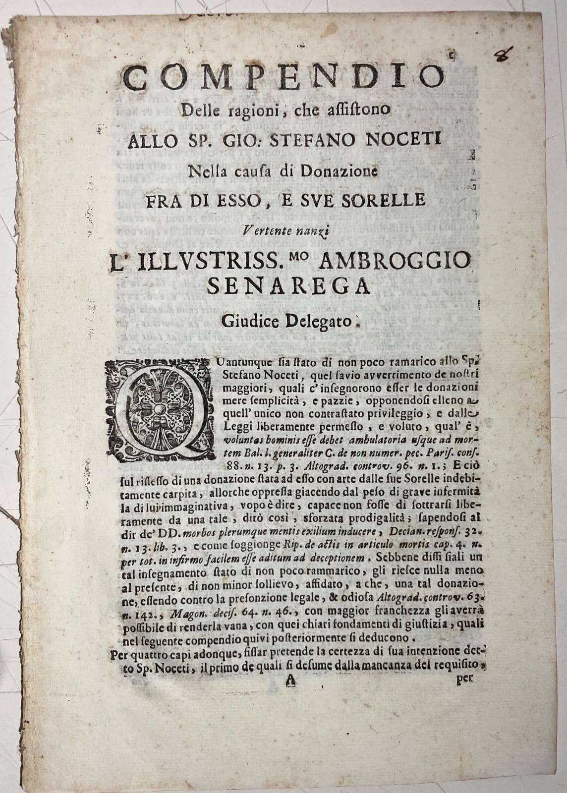 Liguria, Genova: Giuridica, Notariato, Eredità Stefano Noceti, Avvocato Palma 1739