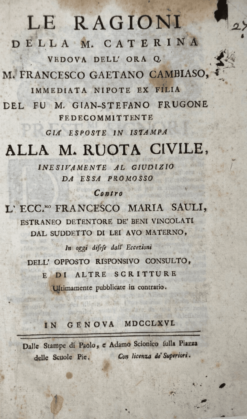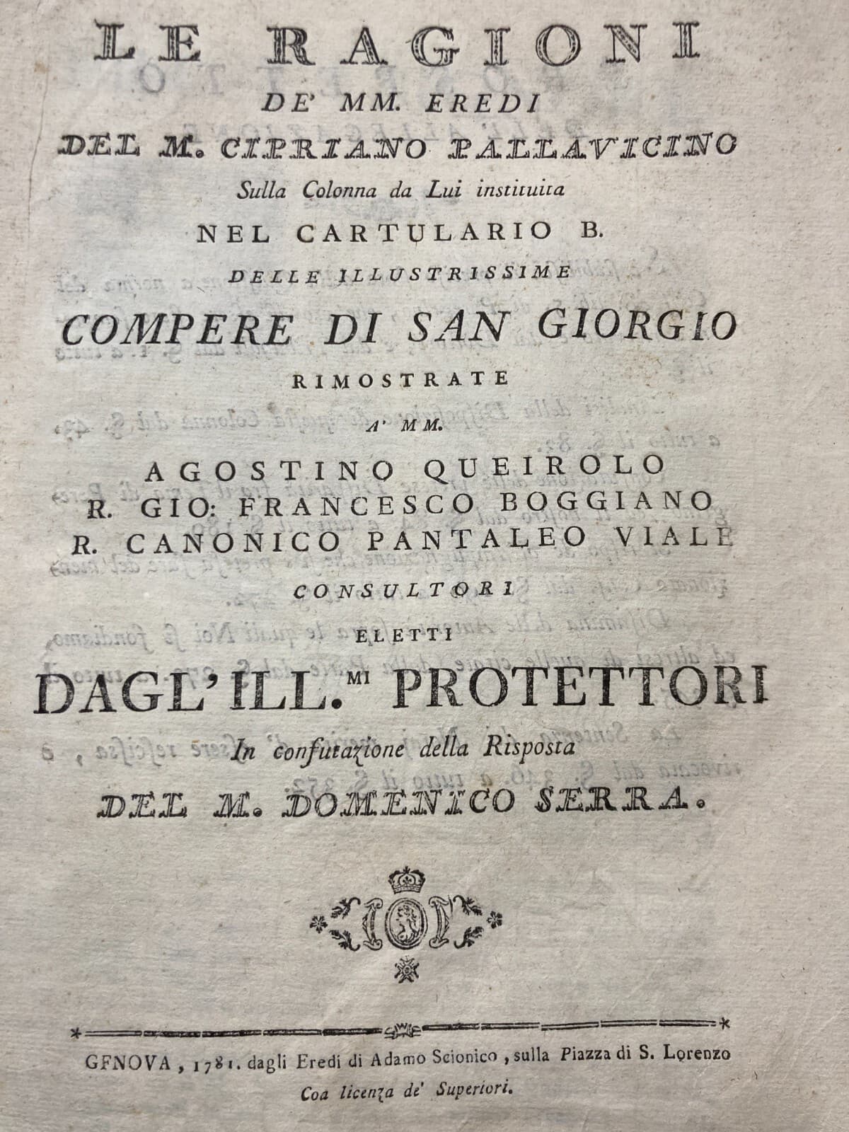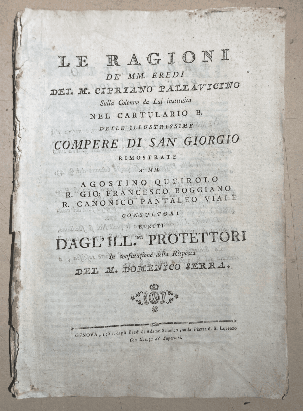 Liguria, Genova: Antica Allegazione Giuridica Pallavicino, Queirolo, Boggiano, Viale