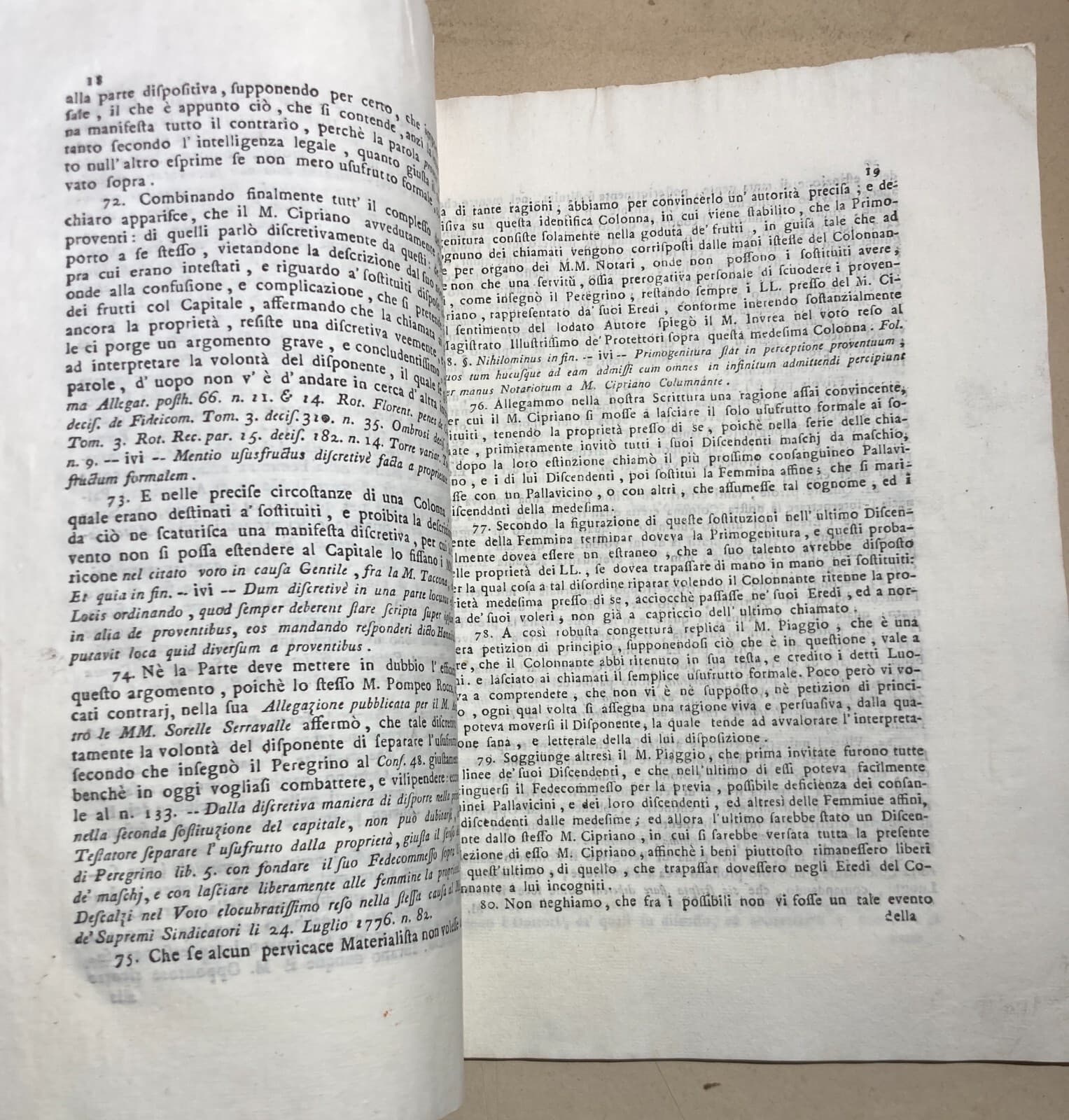 Decisione Della M. Rota Civile Di Genova (1786) Vertenza Grimaldi, Pallavicino, Parisetti