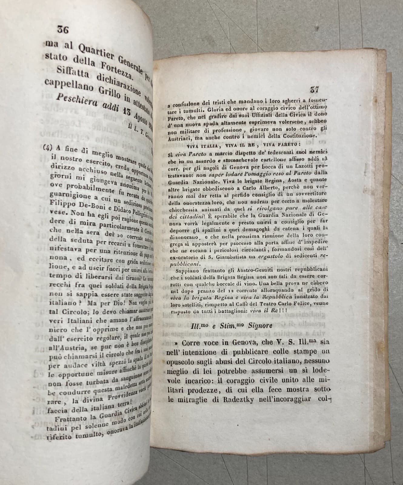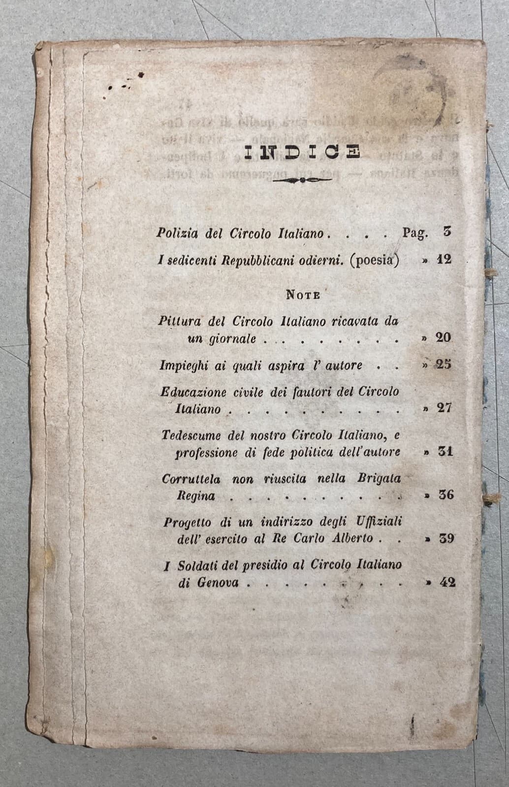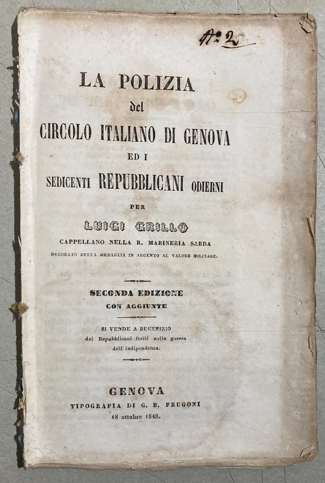 Liguria, Genova, Risorgimento: Circolo Italiano, Luigi Grillo, Fusinato, 1848 Rarità