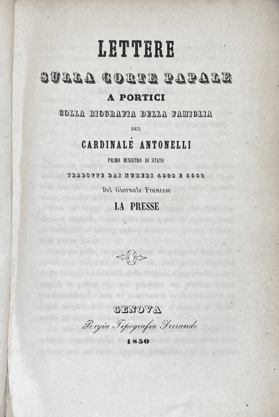 Lettere Da Portici, Napoli, Corte Papale, Cardinale Antonelli