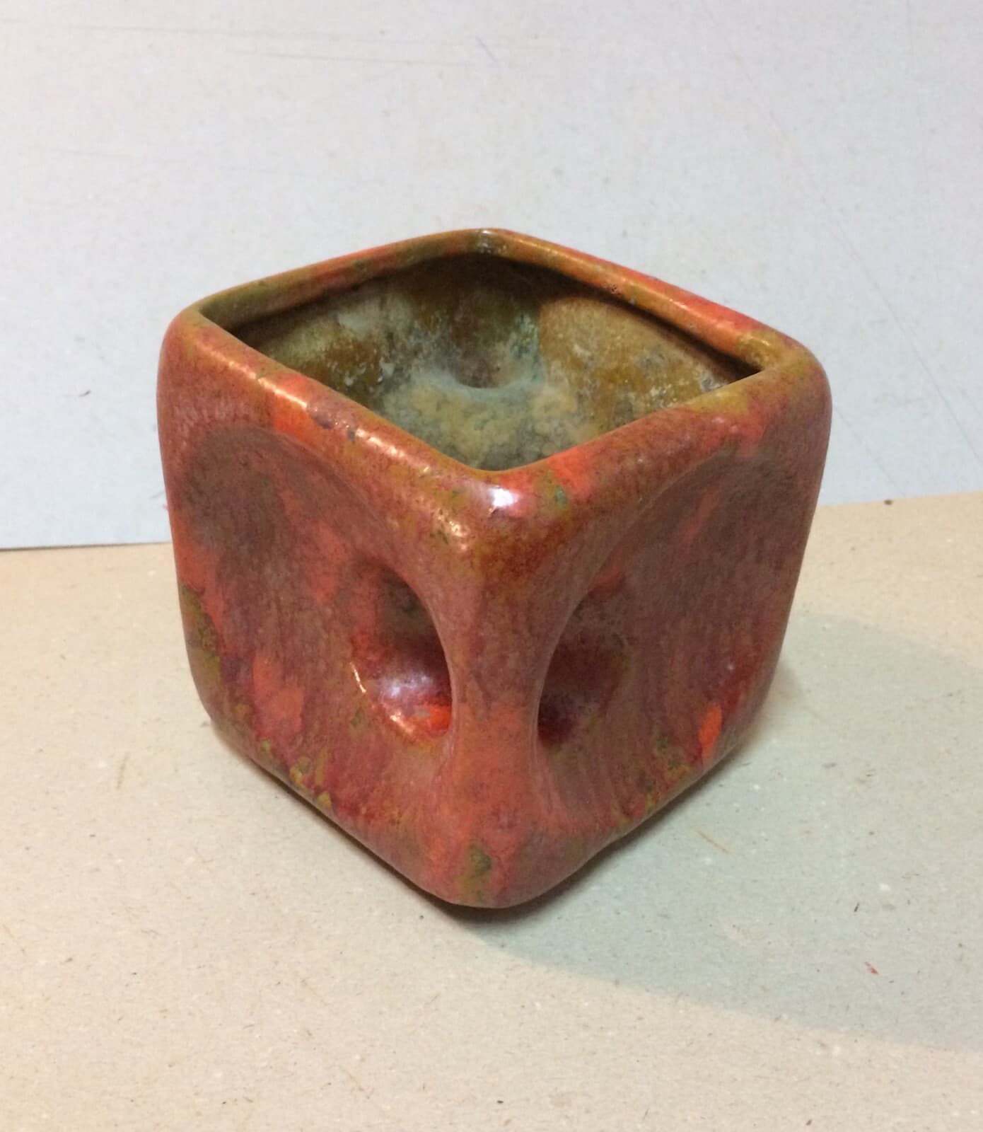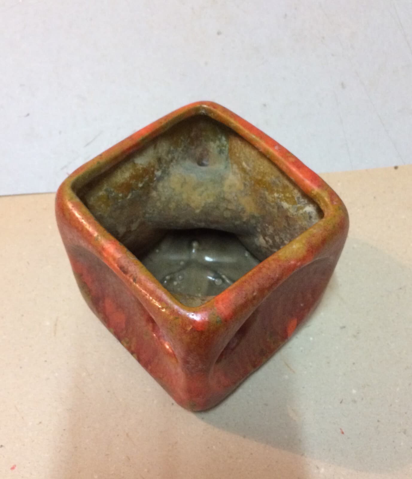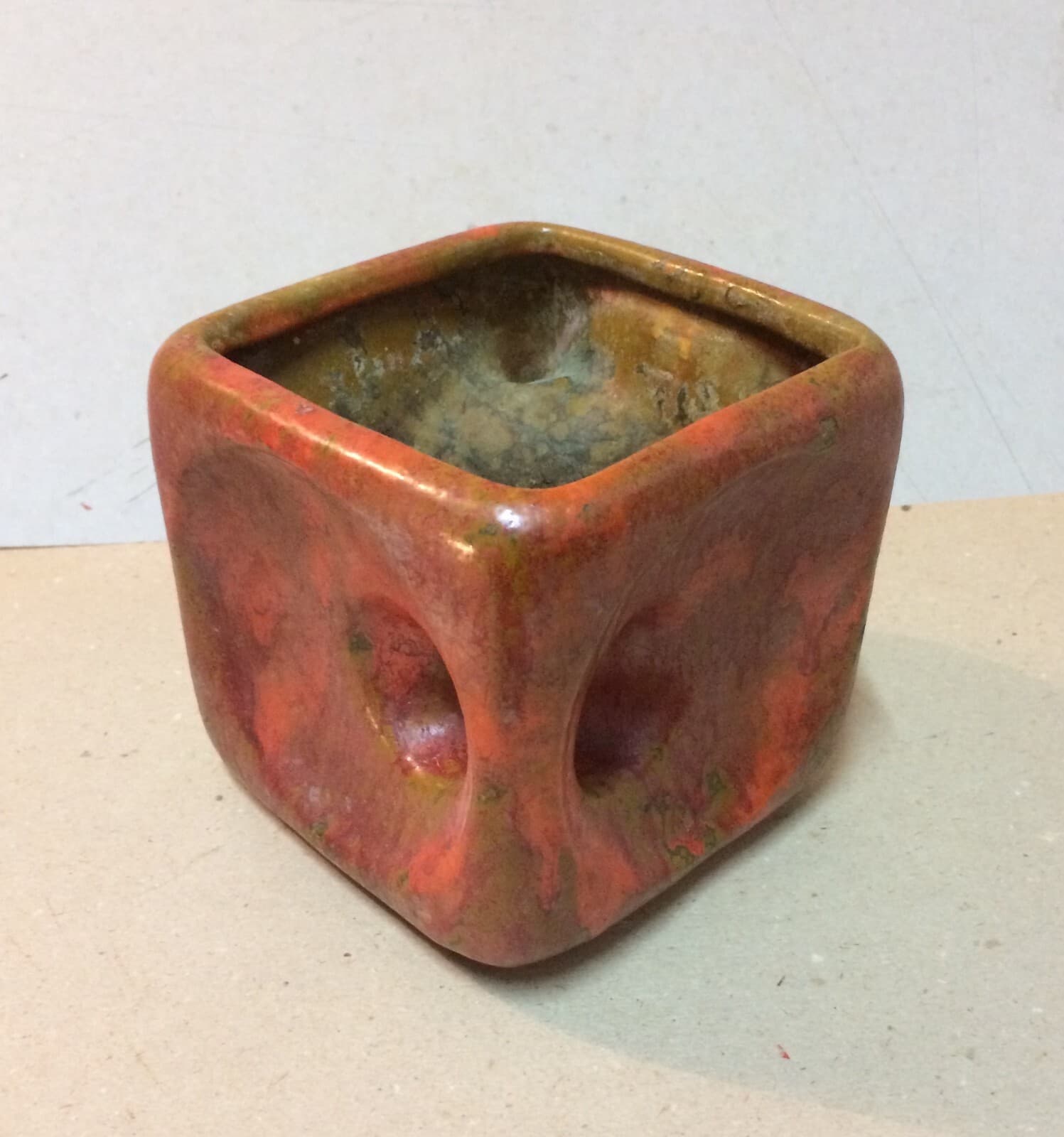 Soprammobile In Ceramica Di Design, Cubo Marmorizzato, Attribuibile Ad Alessio Tasca