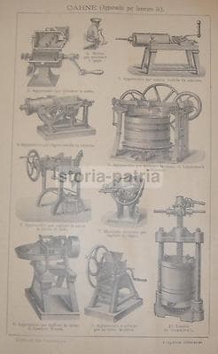 Tecnica: Macellazione Della Carne, Macello E Apparecchi Per Salsiccia. Stampa d'Epoca.