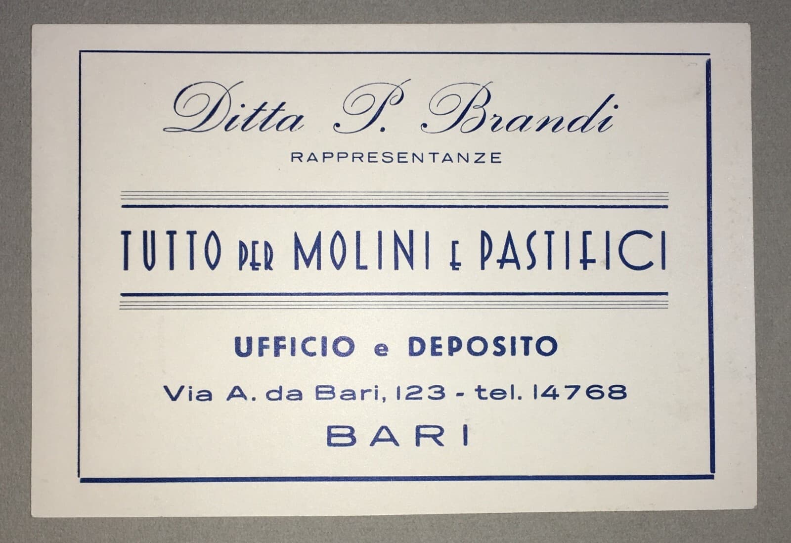Puglia, Bari: Attrezzatura Per Molini E Pastifici, Ditta Brandi Pubblicitaria