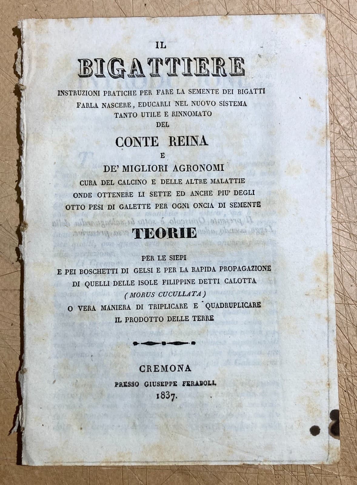Il Bigattiere: Istruzioni Per L'Allevamento Dei Bachi Da Seta E La Coltivazione Dei Gelsi, Cremona