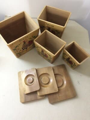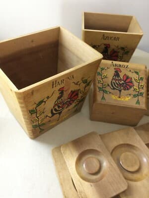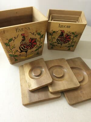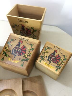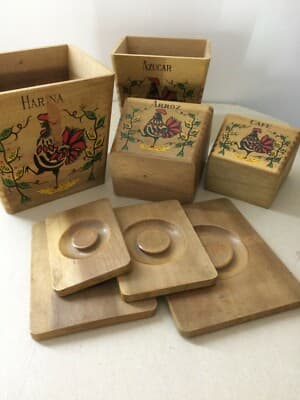 Insieme Di Scatole Da Cucina In Legno Con Decoro A Gallo