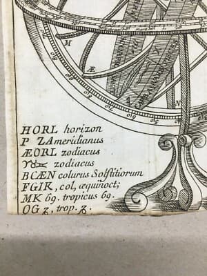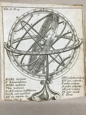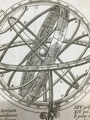 Astronomia: Antico Planetario, Sfera Armillare, Zodiaco E Costellazioni. Incisione Del '700.