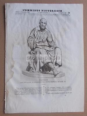 Ritratto Di Galileo Galilei: Opera Scultorea Monumentale, Incisione Del 1840
