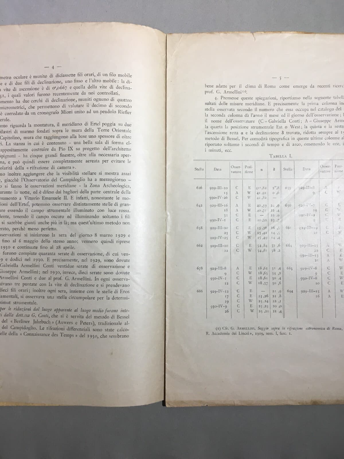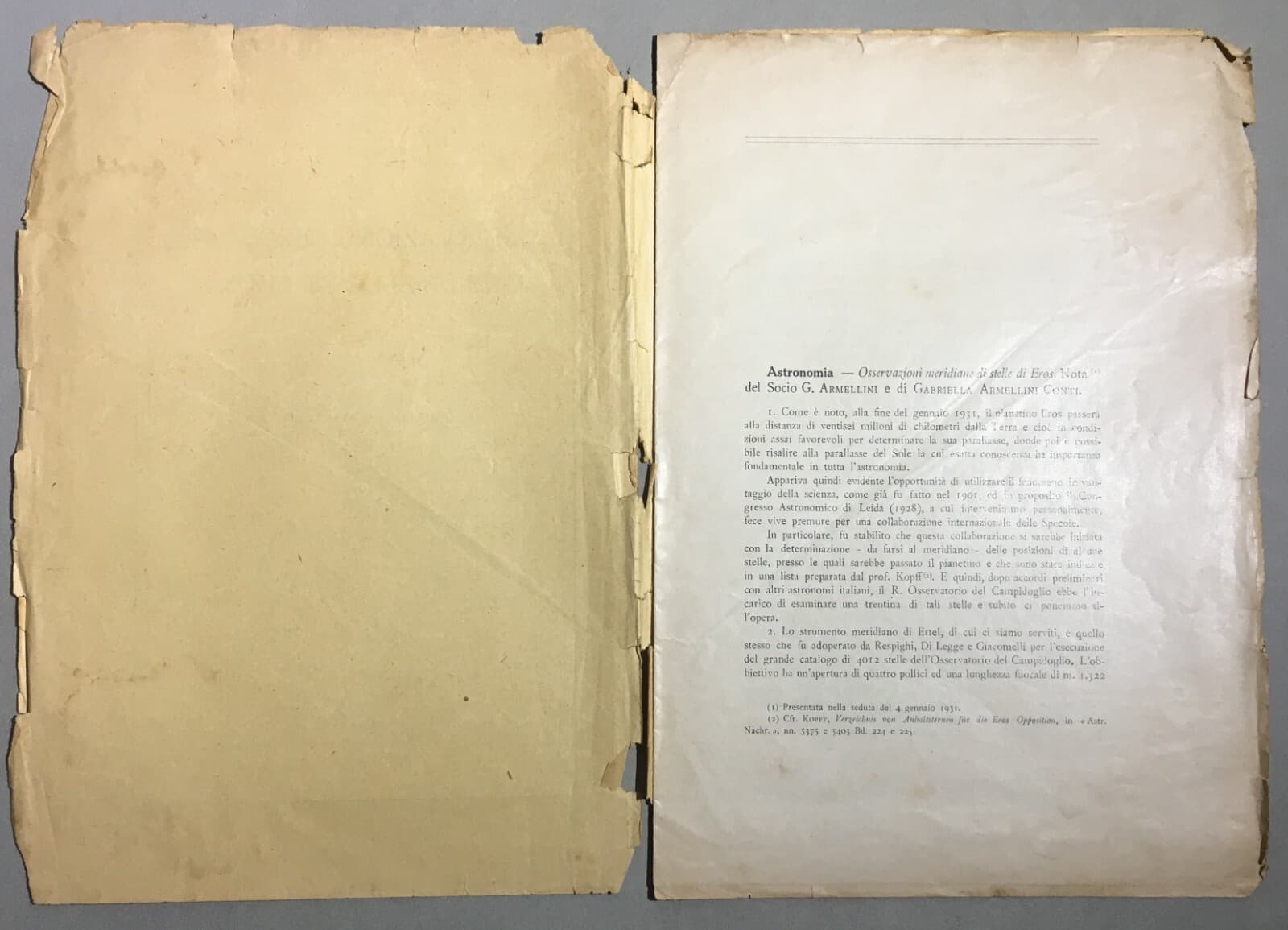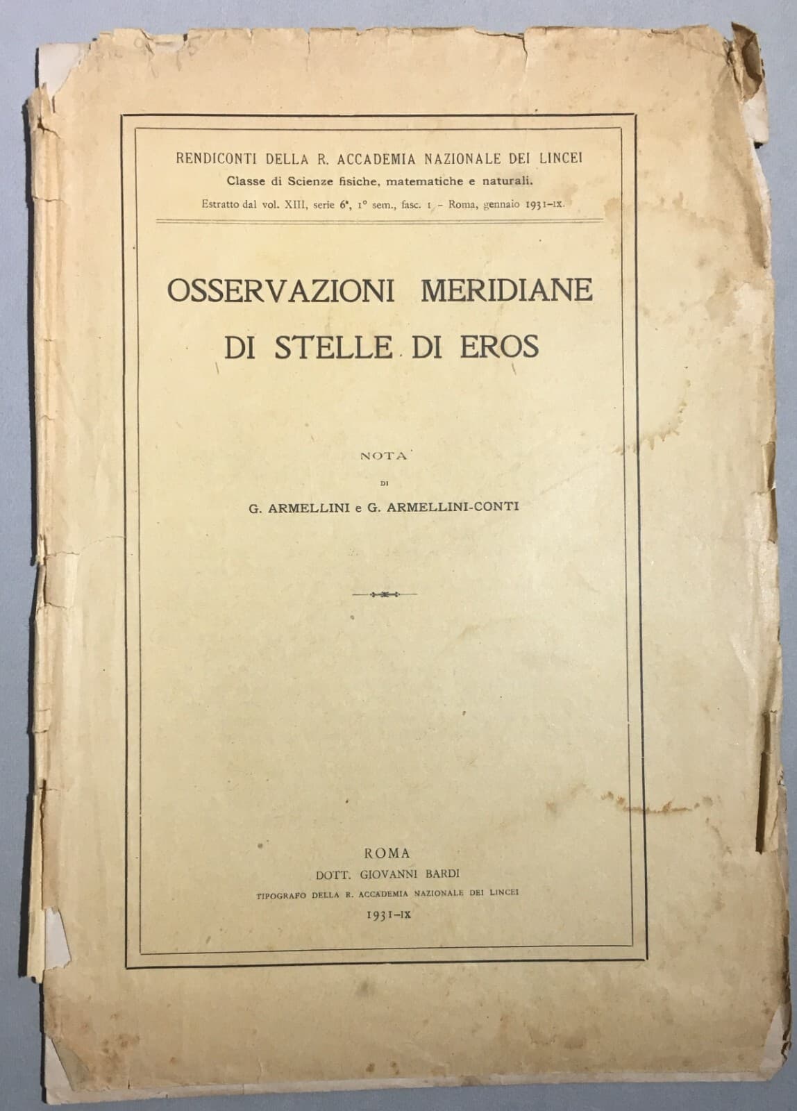 Astronomia Armellini: Osservazioni Meridiane Di Stelle Di Eros Estratto Del 1931