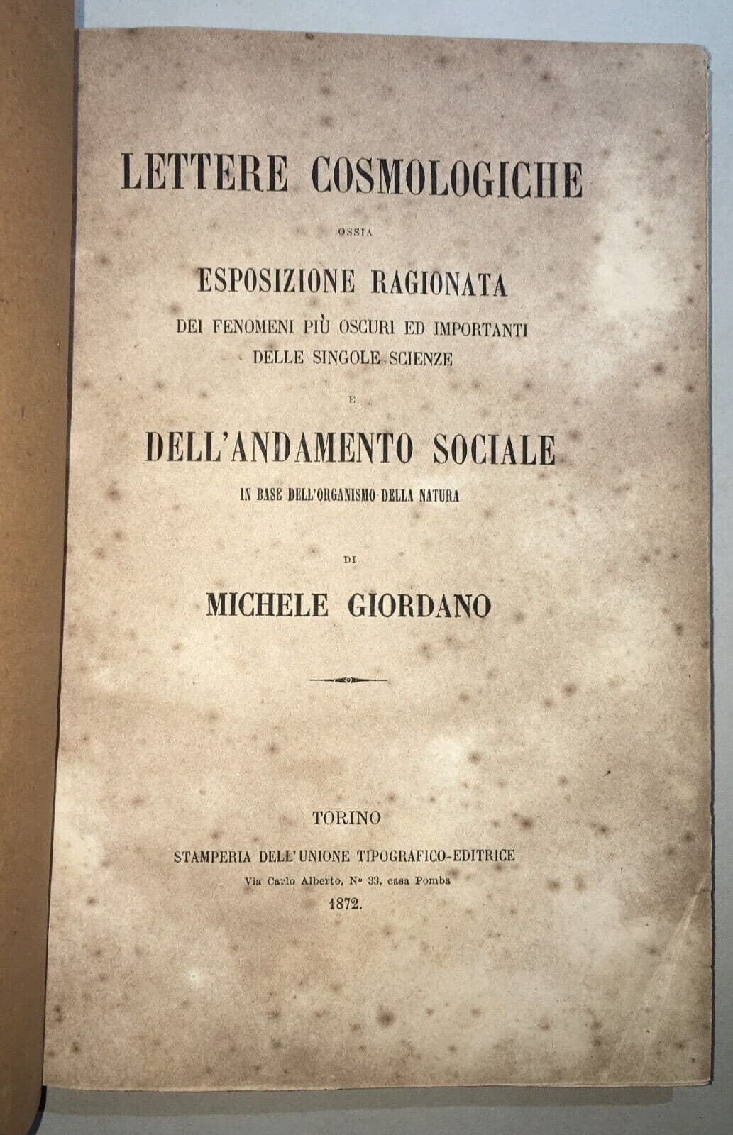 Lettere Cosmologiche: Scienze, Fisica E Metafisica Di Michele Giordano (1872)