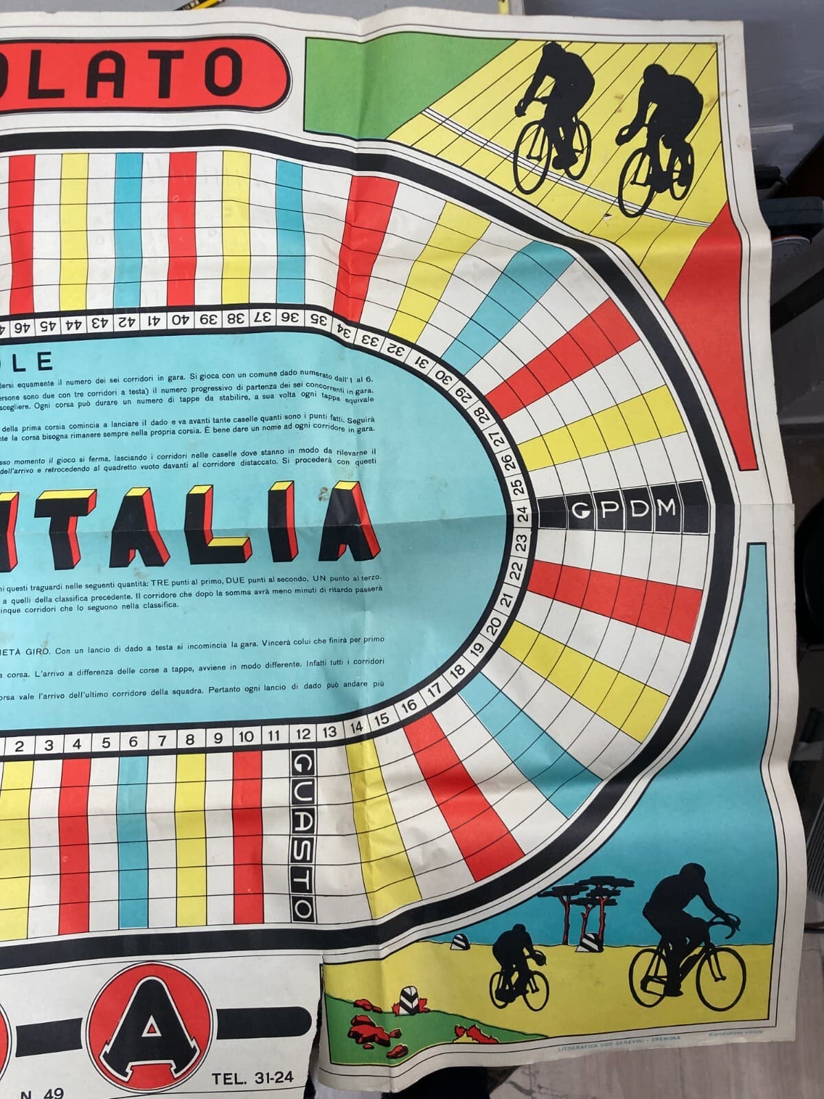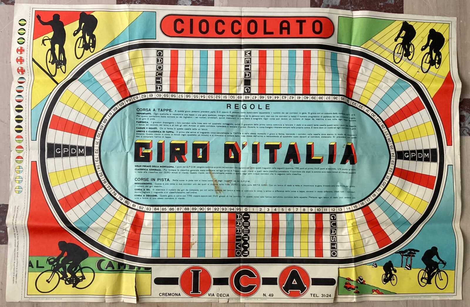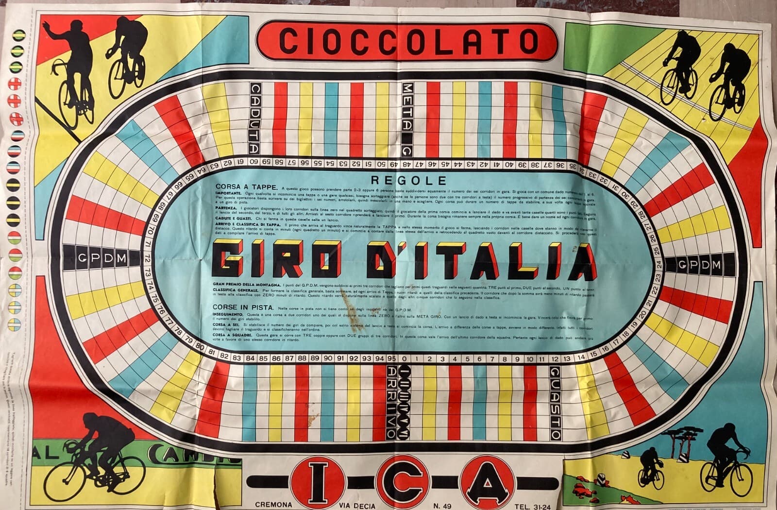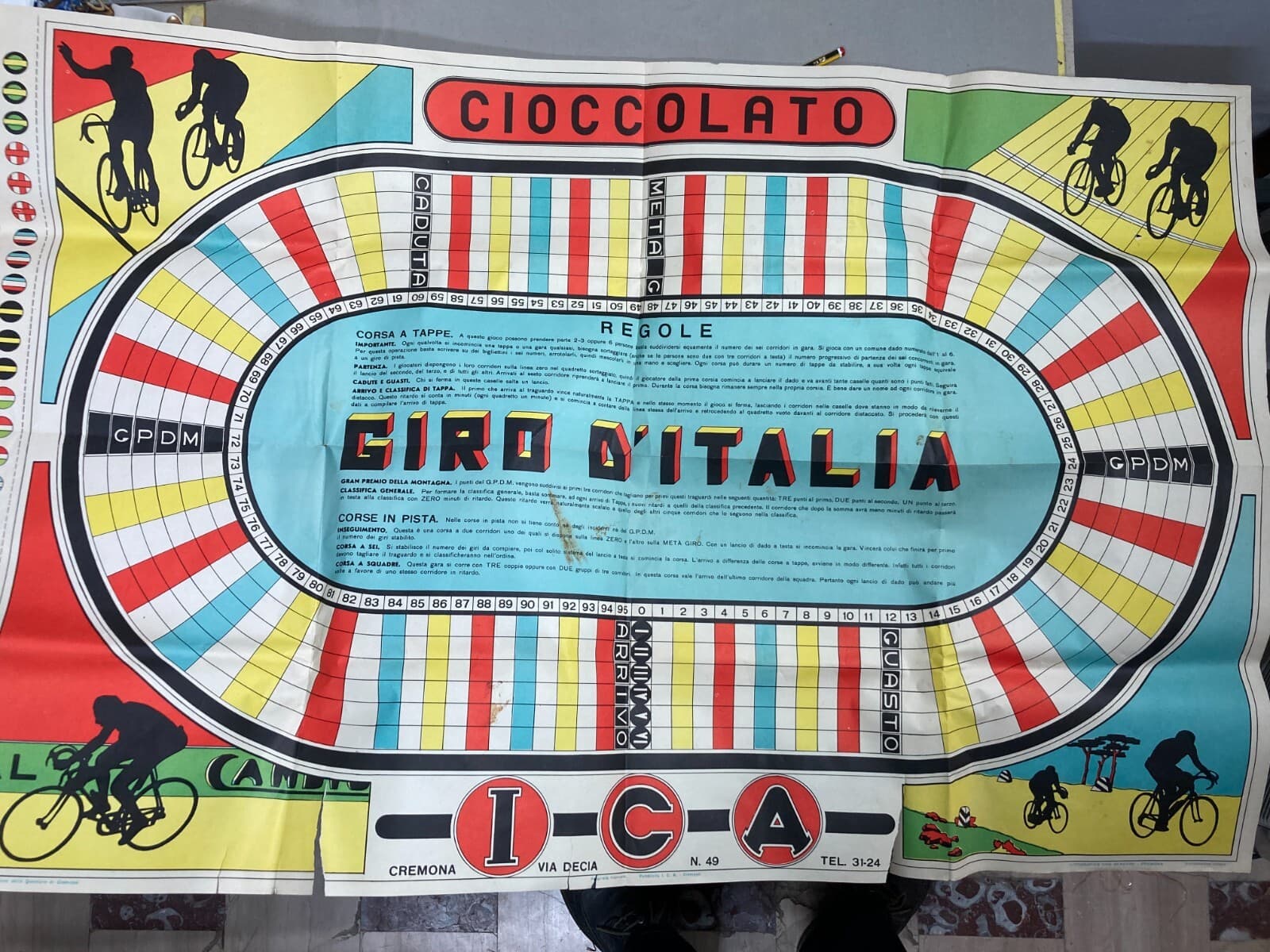 Sport: Ciclismo, Giro d'Italia. Enorme Gioco Di Percorso, Cromolitografia Gerevini, Cremona