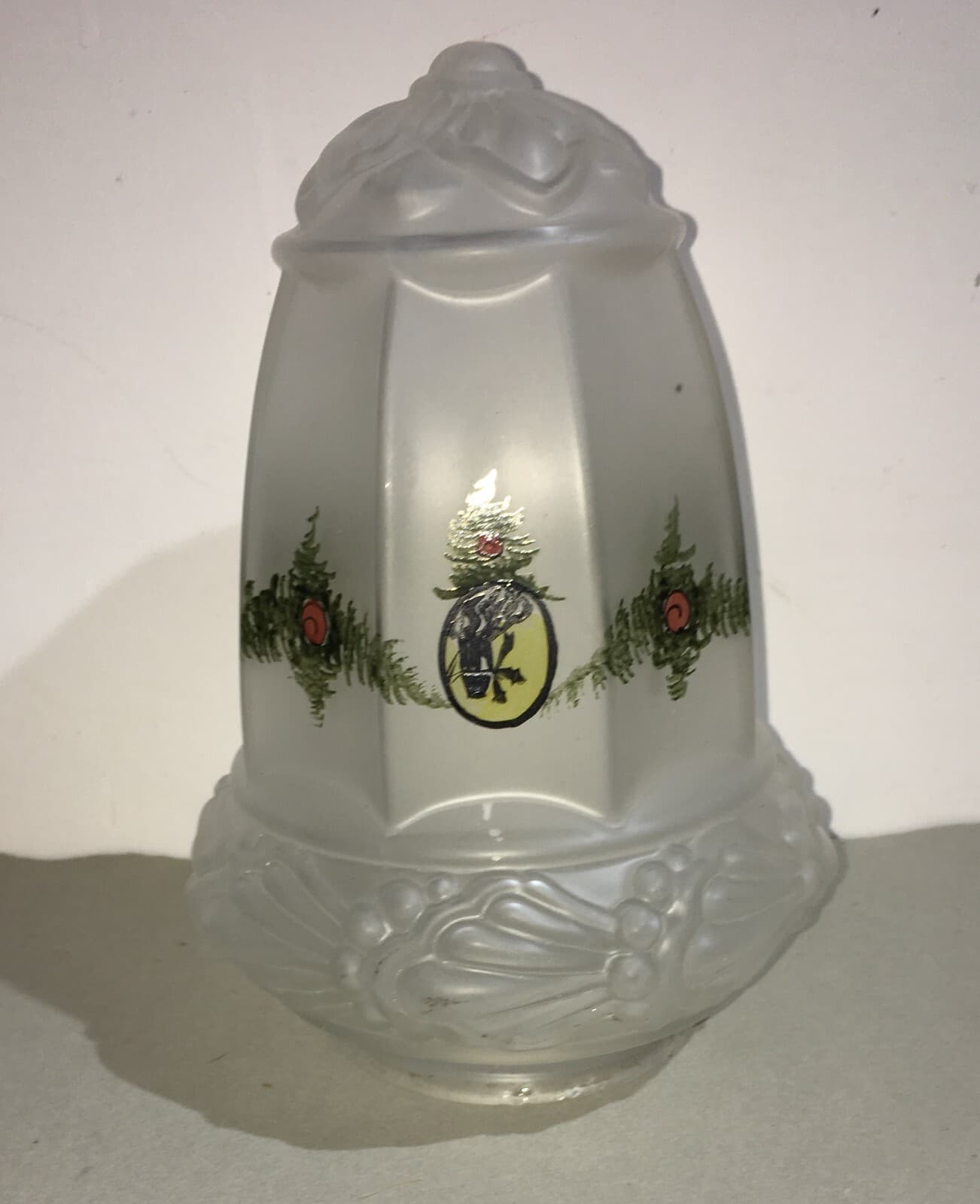 Antica Coppa Per Lampada In Vetro Satinato A Pigna
