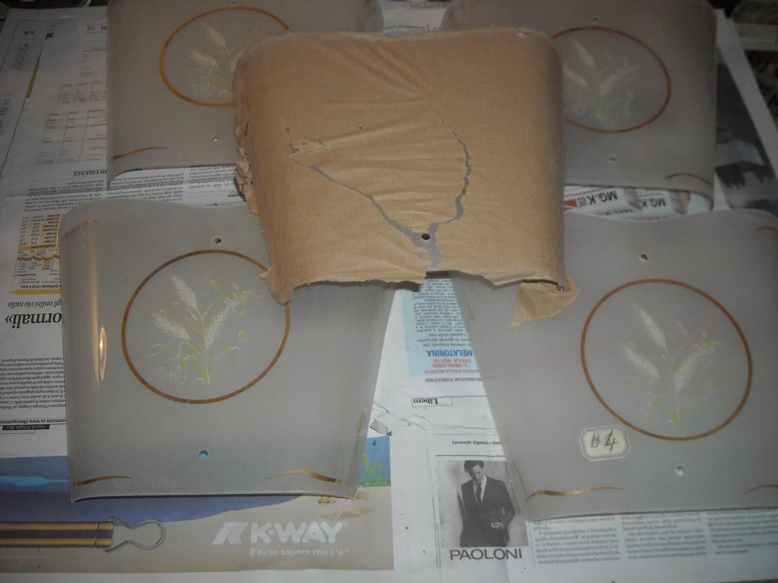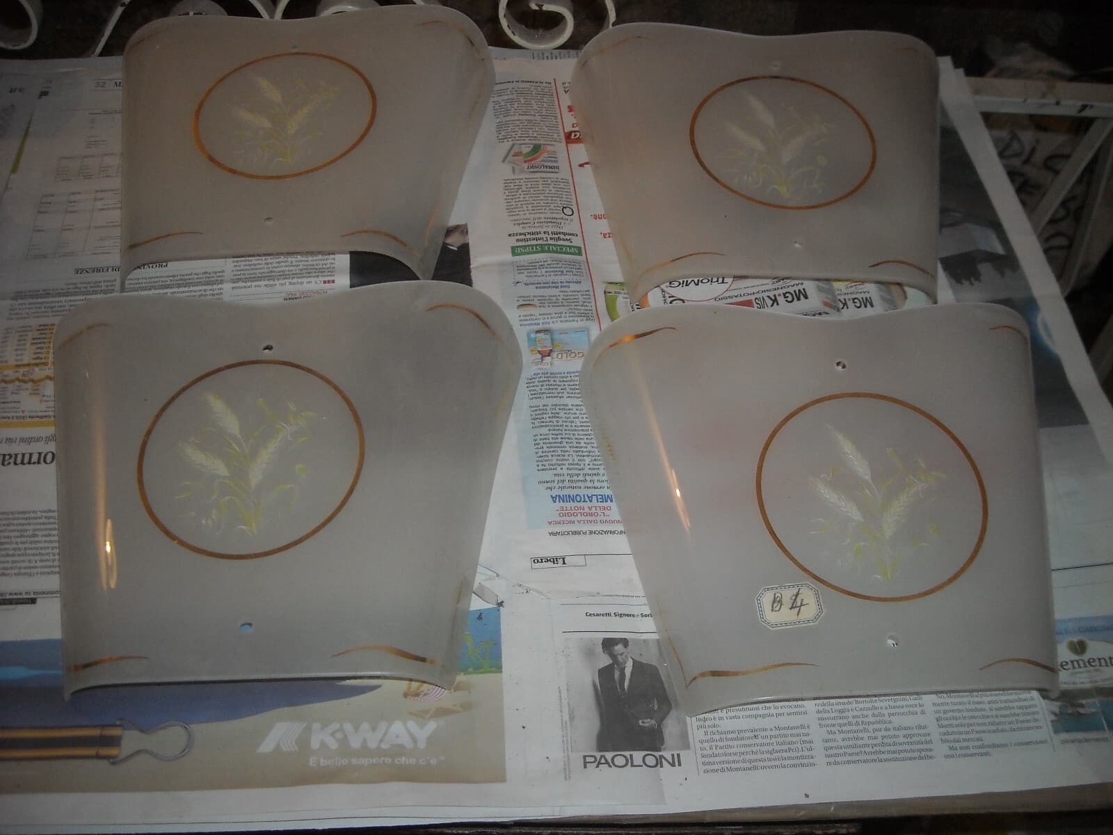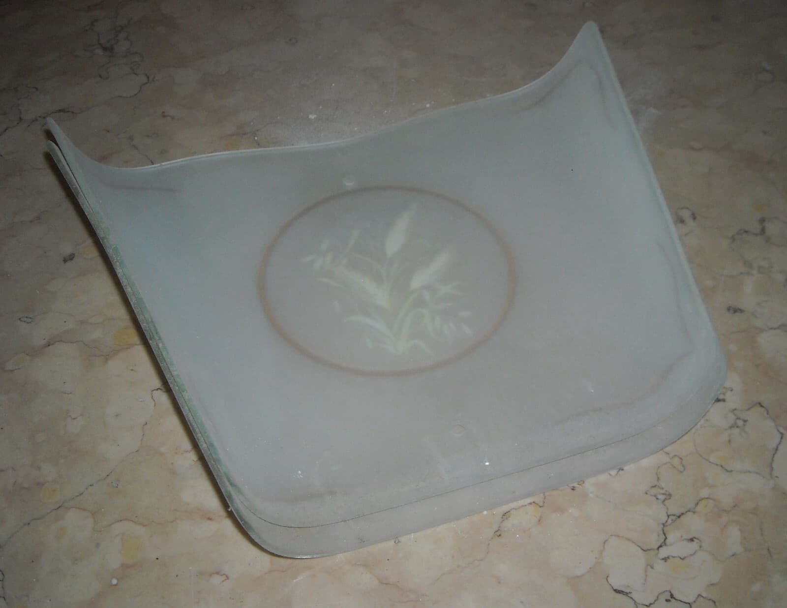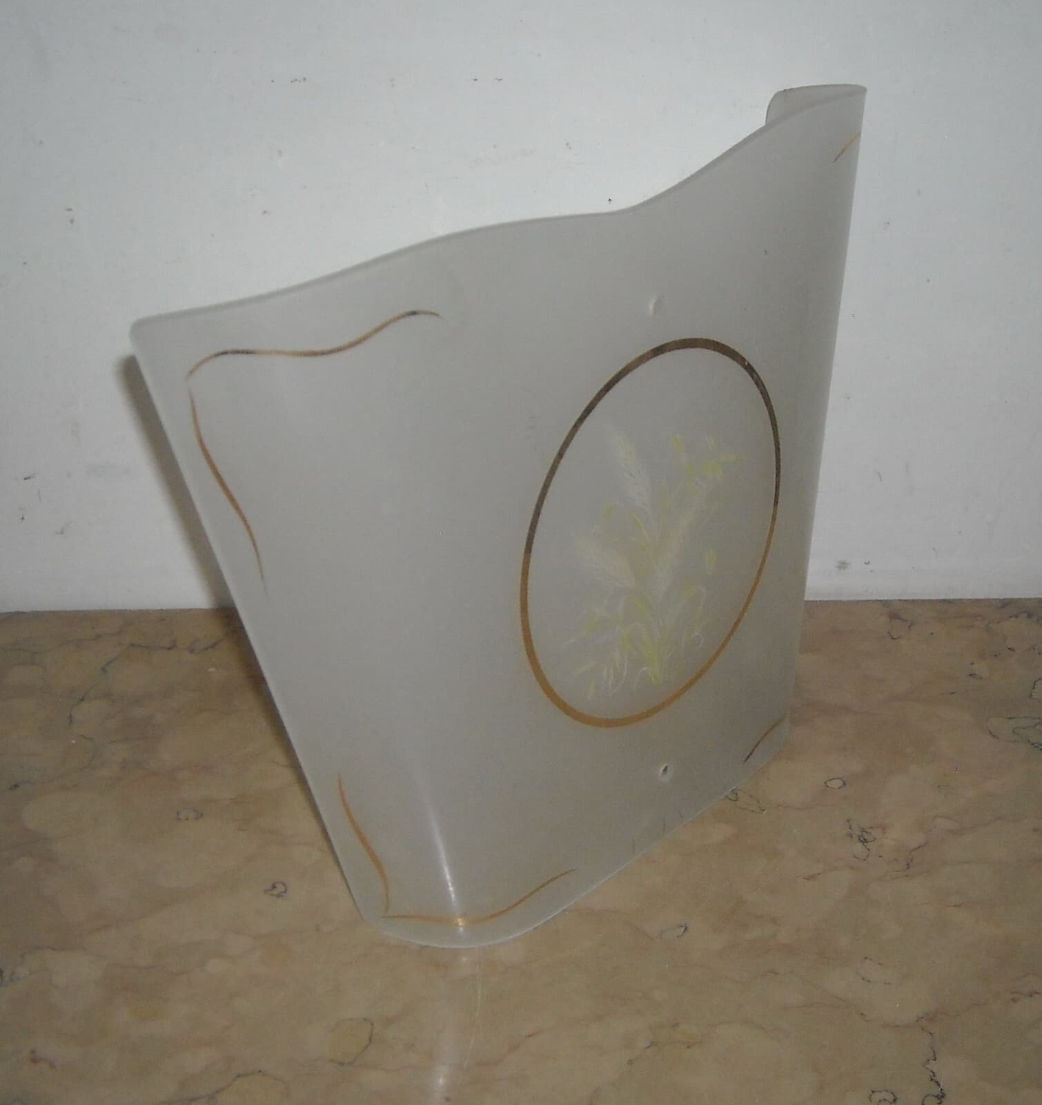 Modernariato Design: Coppa Per Lampada In Vetro d'Epoca Con Decoro Floreale
