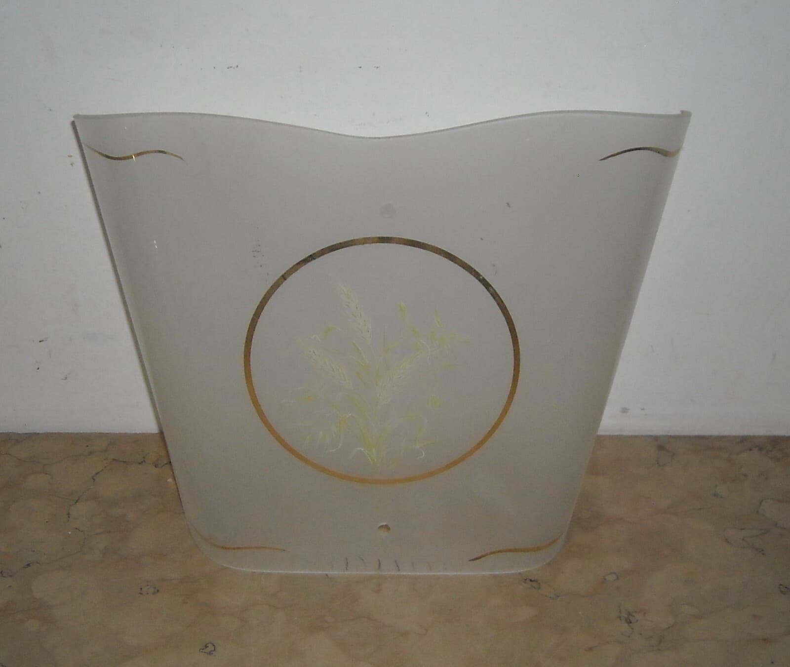 Vetro Decorativo Per Lampada Con Motivi A Spighe Di Grano, Metà Del Novecento