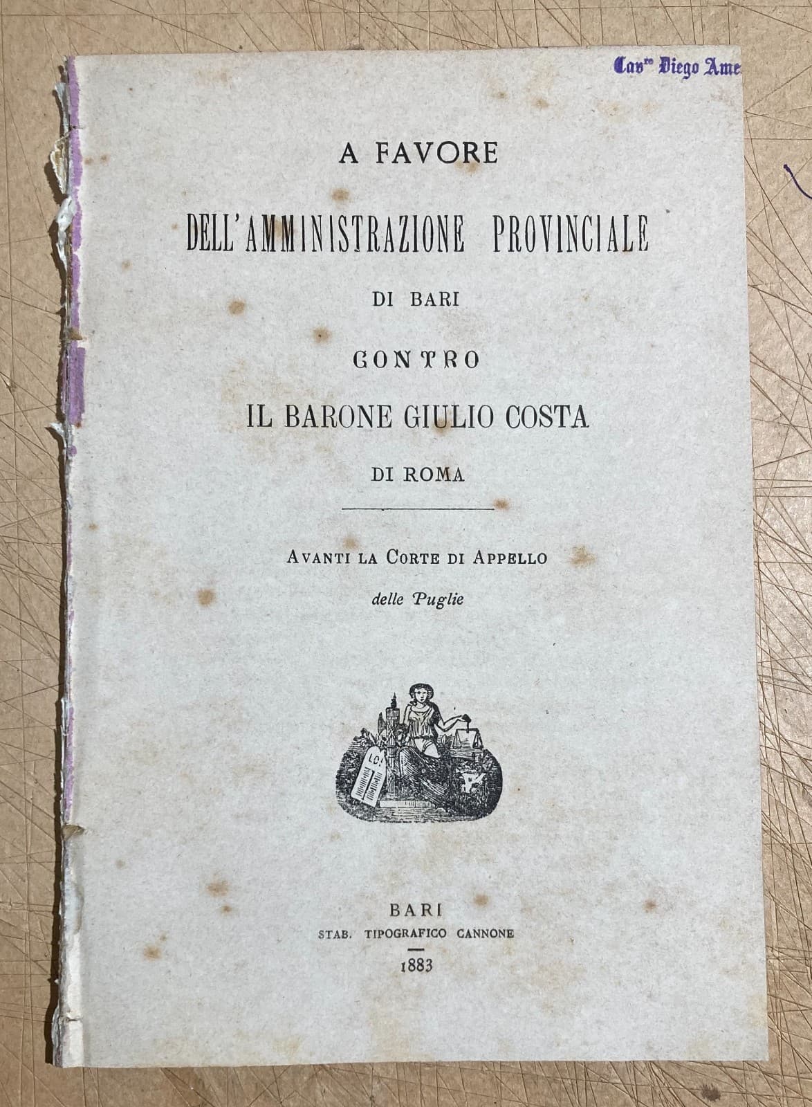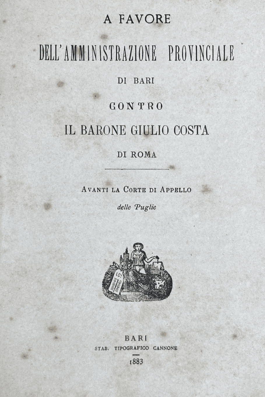 Puglia. Giuridica, Bari: Barone Costa E La Ferrovia Barletta Spinazzola. Re David, 1883